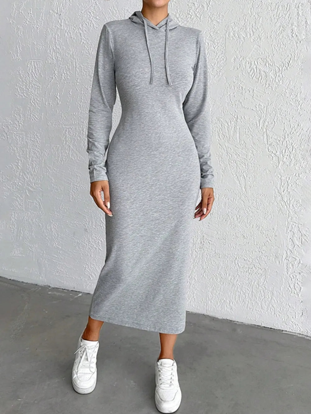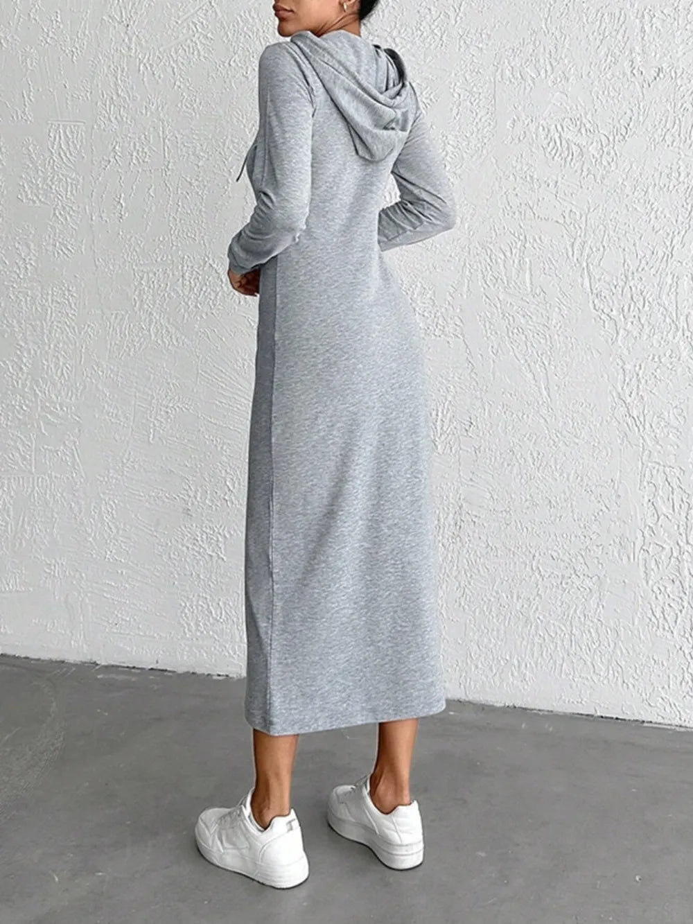 Home/Midi & Mini Dresses/Drawstring Long Sleeve Hooded Midi Dress