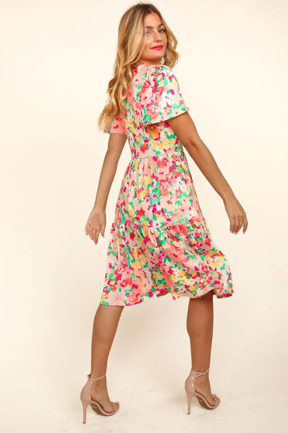 This Tiered Floral Midi Dress with Pockets is a charming and practical addition to your wardrobe. The tiered design adds a playful and feminine touch to the dress. Featuring convenient pockets, it offers both style and functionality for storing small essentials. The floral print evokes a sense of freshness and elegance, perfect for any occasion. The midi length provides a flattering silhouette that is versatile and easy to style. Step out in style and comfort with this beautiful tiered floral midi dress for a chic and effortless look that you'll love.