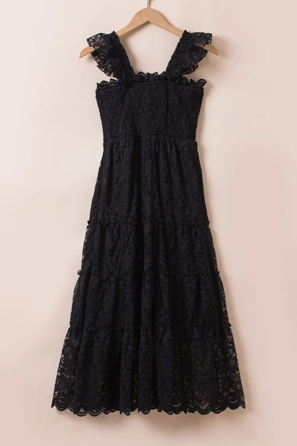 Home/Midi & Mini Dresses/Lace Ruffled Wide Strap Midi Dress