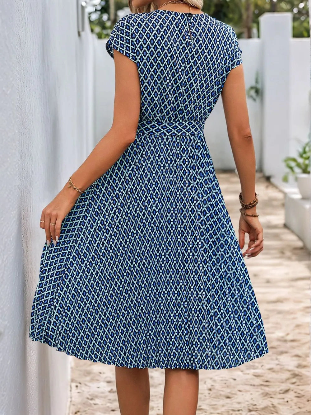 Home/Midi & Mini Dresses/Perfee Printed Round Neck Short Sleeve Midi Dress