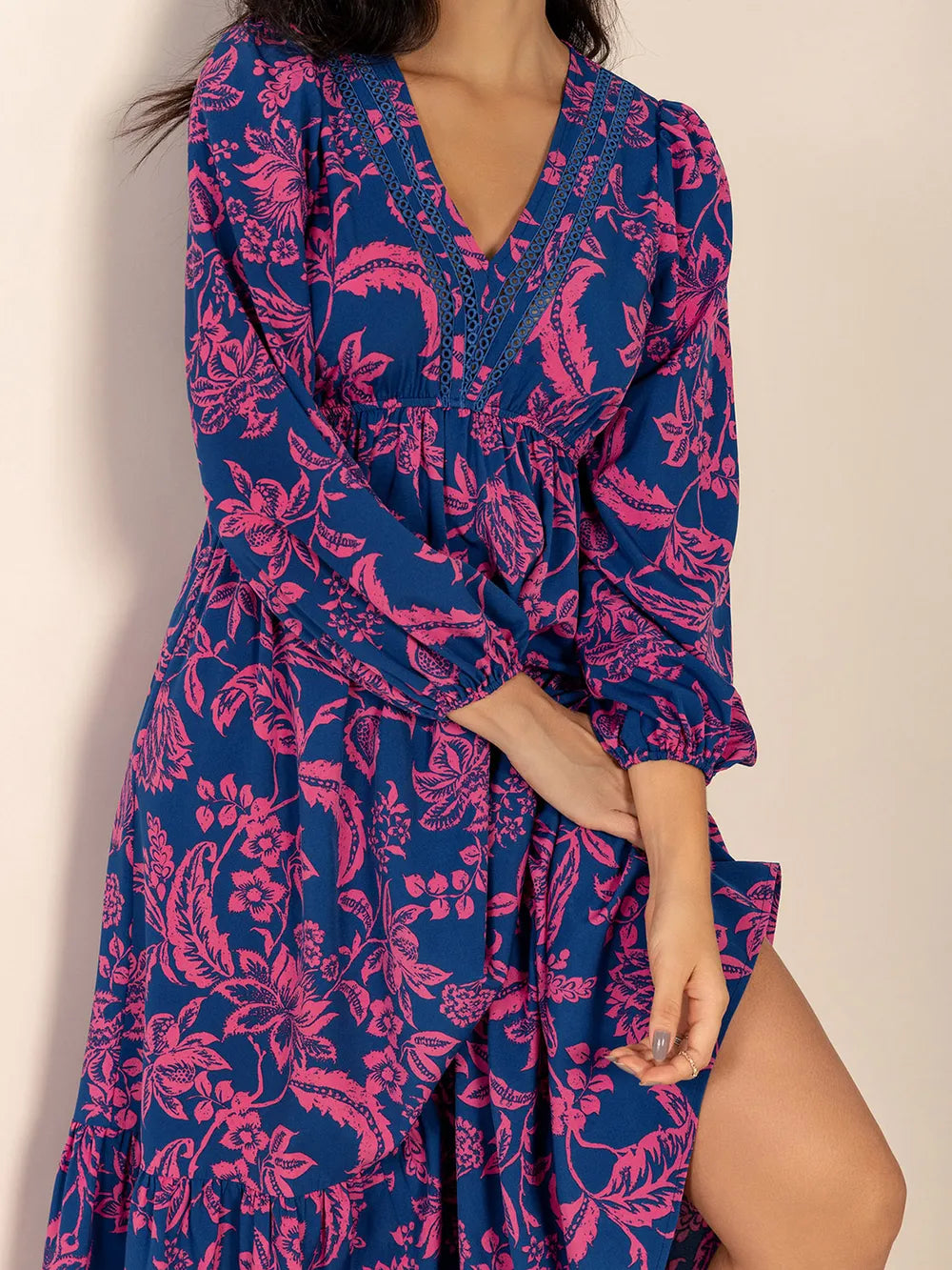 Home/Midi & Mini Dresses/Printed V-Neck Long Sleeve Midi Dress