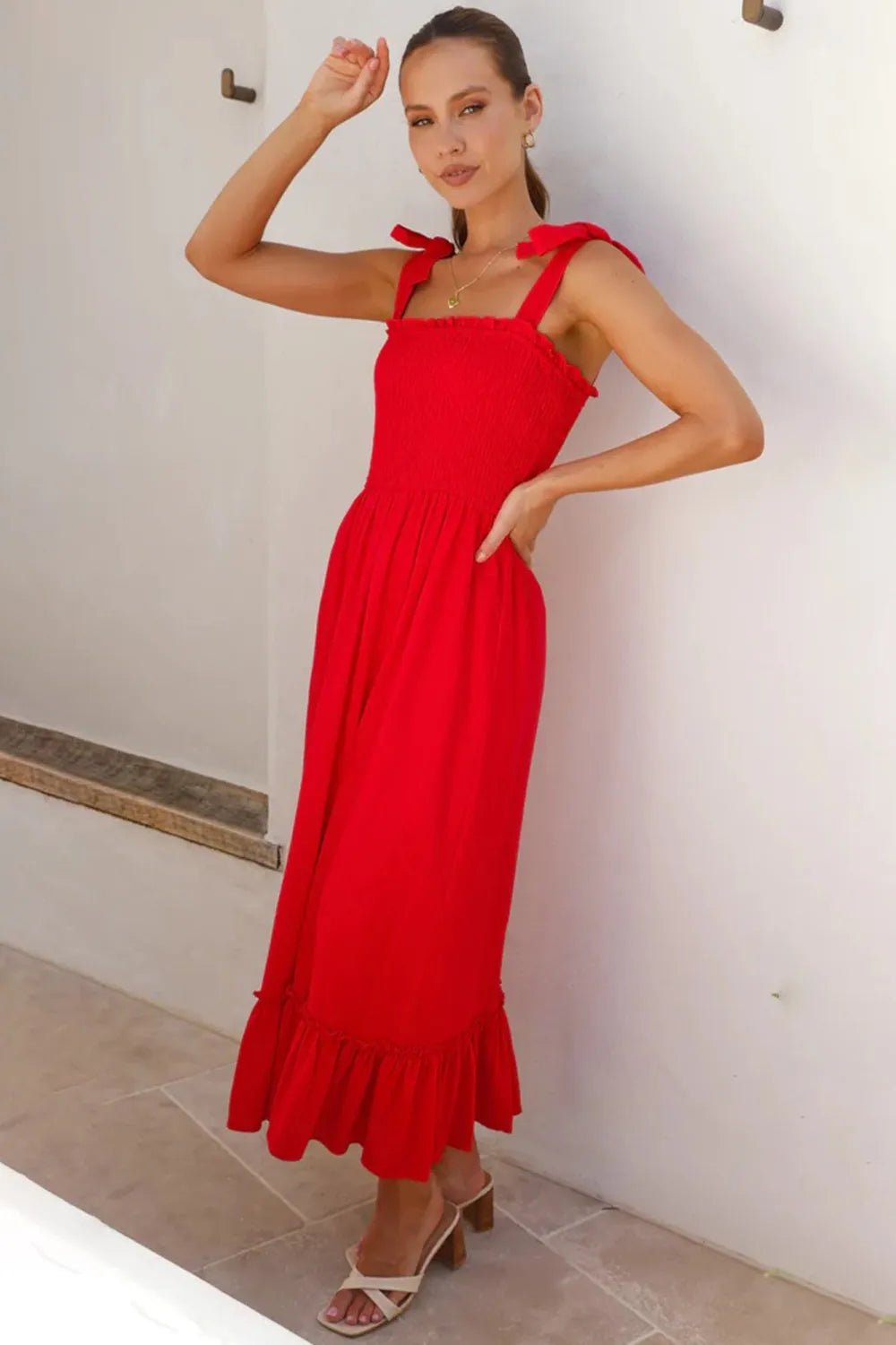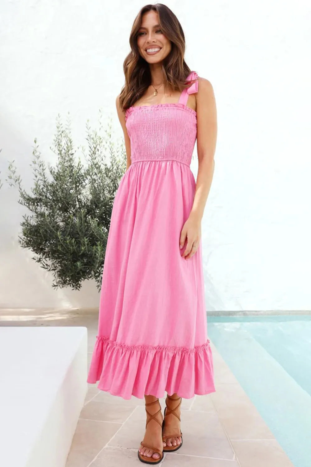 Home/Midi & Mini Dresses/Ruffled Smocked Ruffle Hem Sleeveless Dress