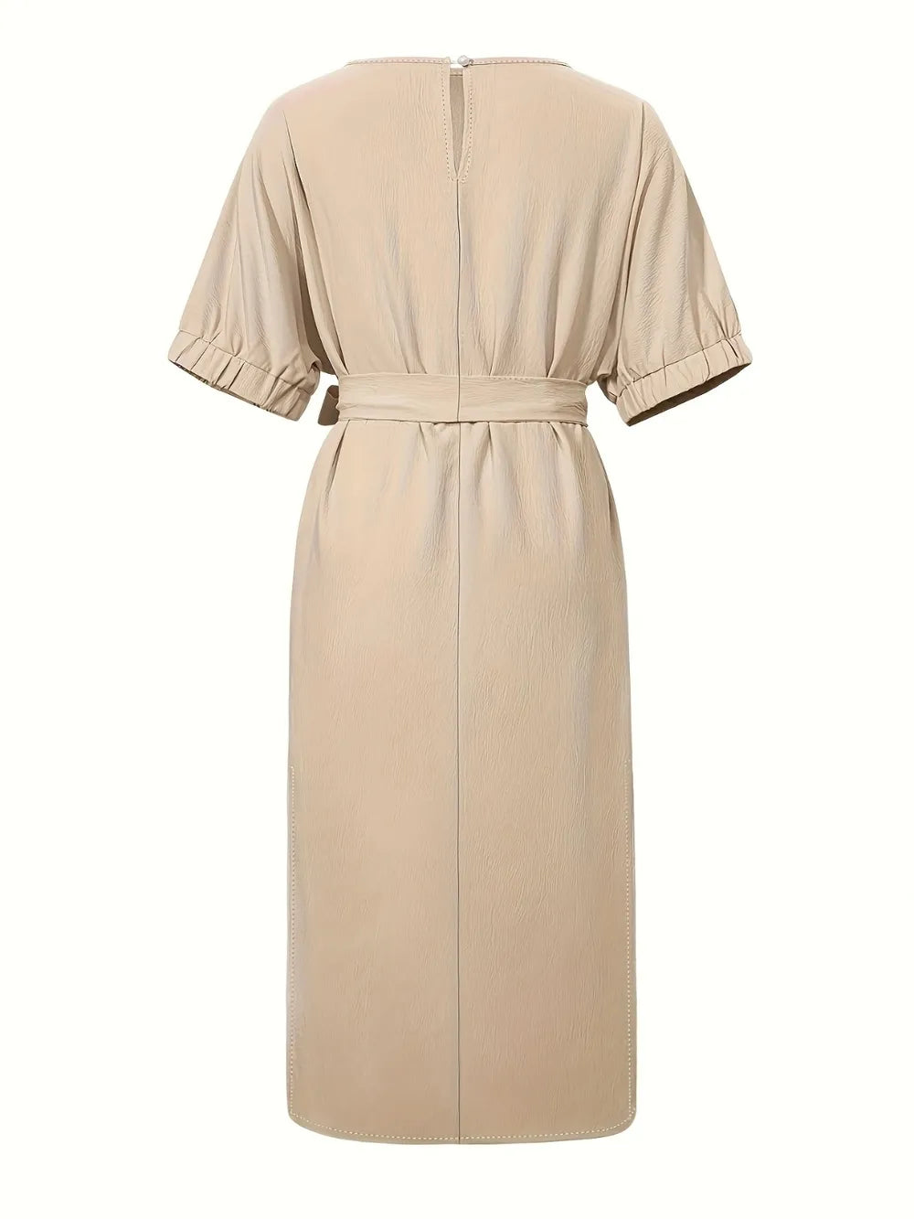 Home/Midi & Mini Dresses/Slit Round Neck Tie Waist Midi Dress