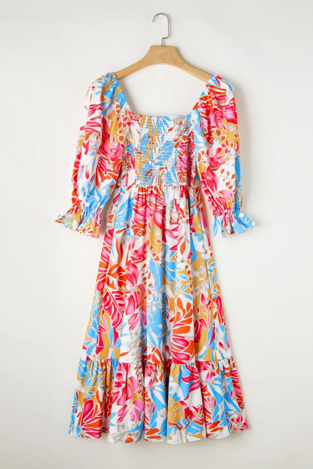 Home/Midi & Mini Dresses/Smocked Printed Half Sleeve Midi Dress