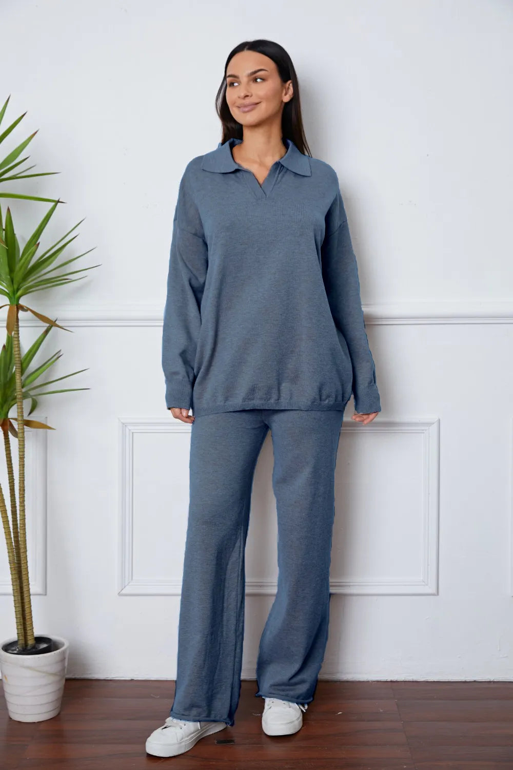 Home/Pants Sets/Dropped Shoulder Sweater and Long Pants Set