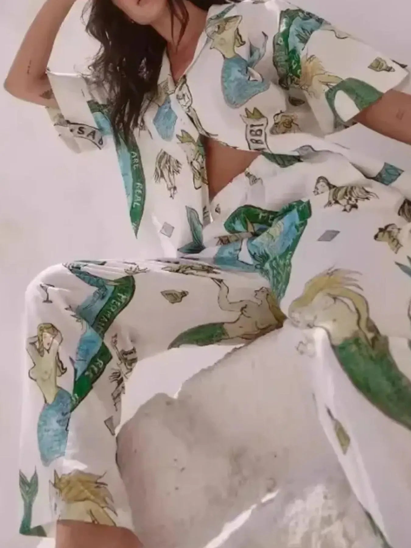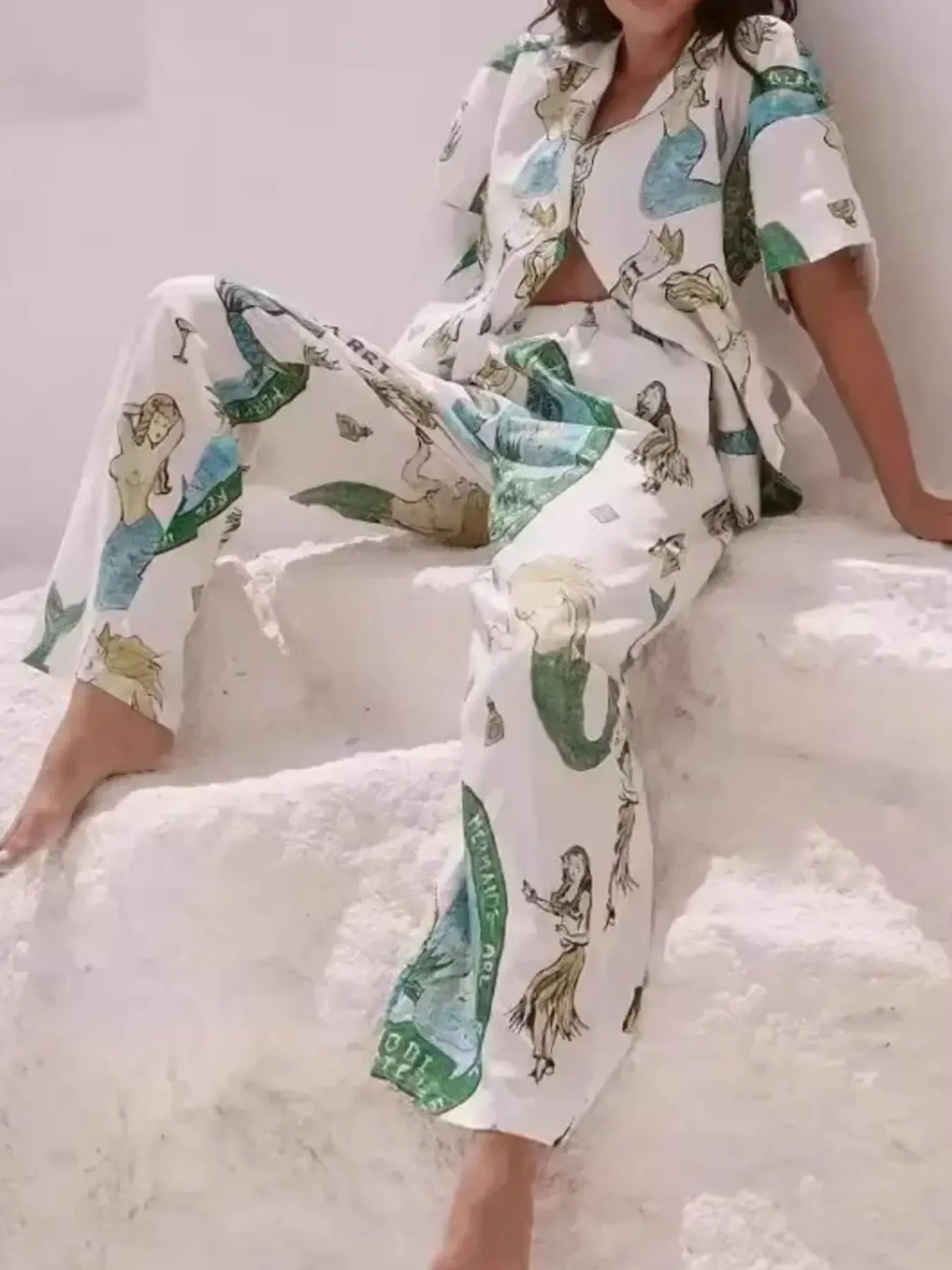 Home/Trousers & Pants/Printed Button Up Shirt and Pants Set