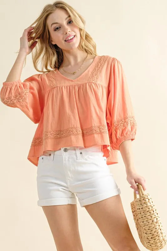 And The Why Lace Detailed V Neck Blouse Top