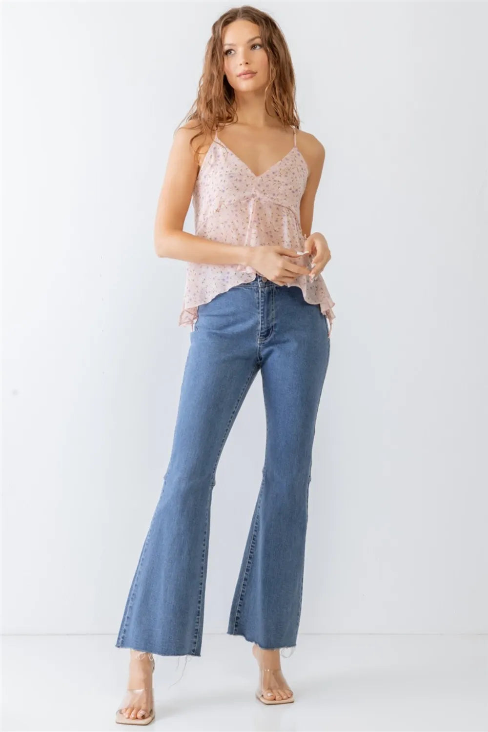 Miss Love / Kevin Co. Floral Print V-Neck Criss-Cross Back Flare Cami