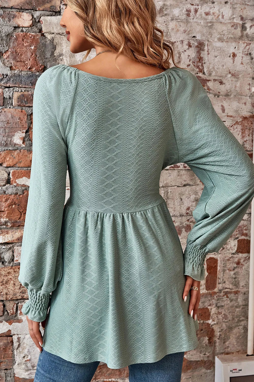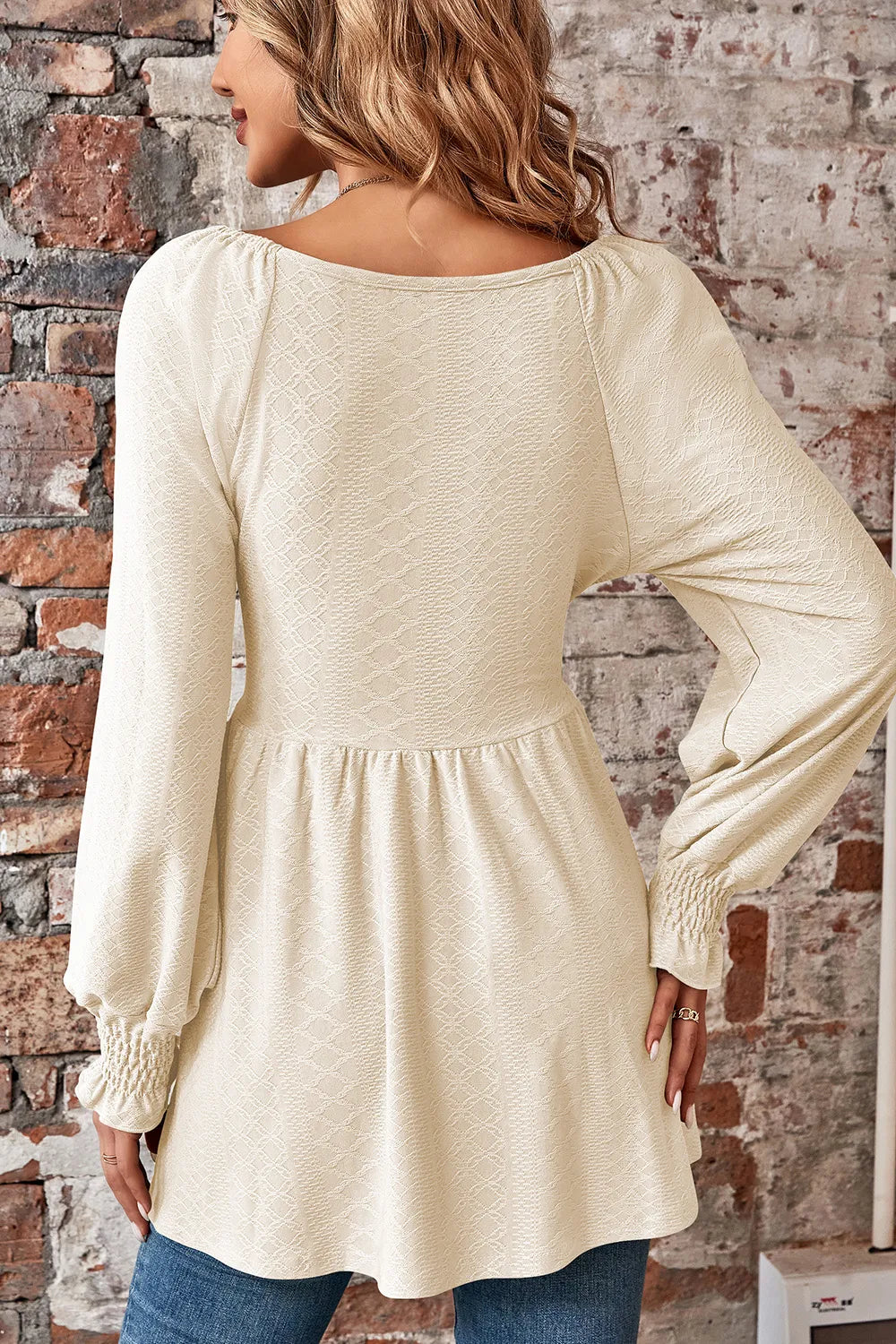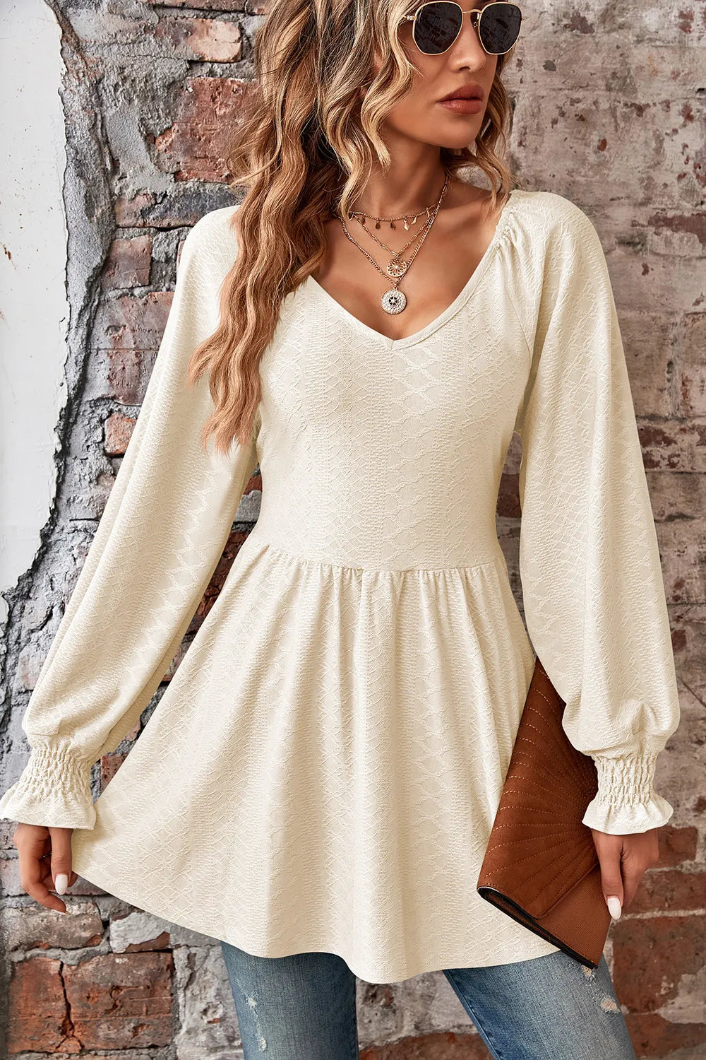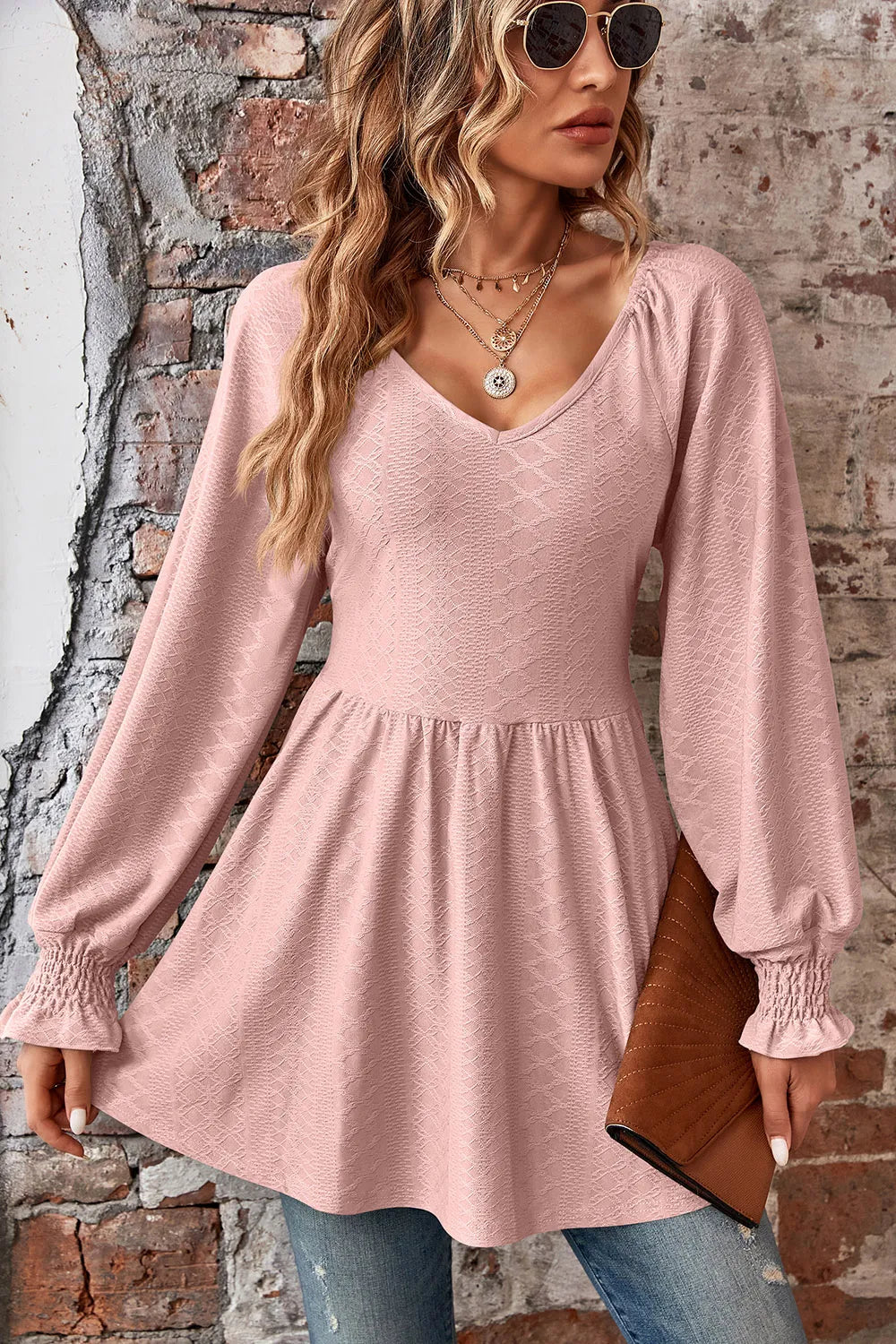 Home/Peplum Tops/Peplum V-Neck Long Sleeve Blouse