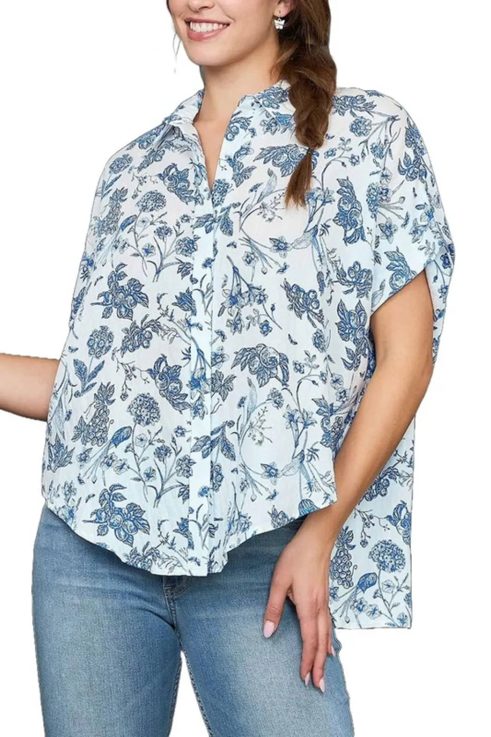 Home/Plus & Full Size Run/Umgee Full Size Two Tone Floral Print Top Plus Size