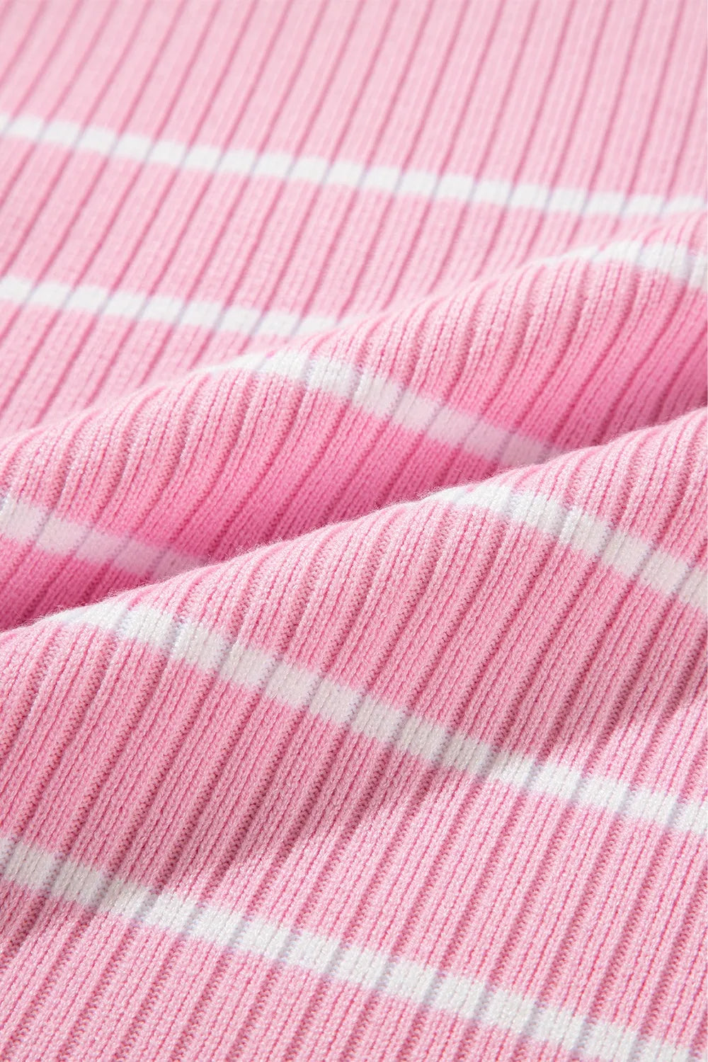 Plus Size Striped Round Neck Cap Sleeve Knit Top