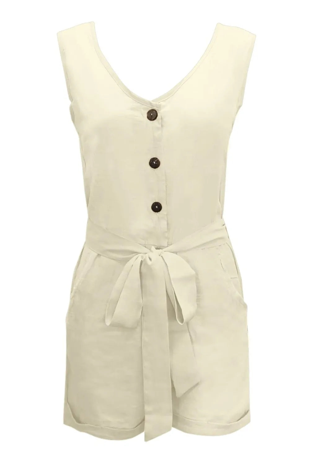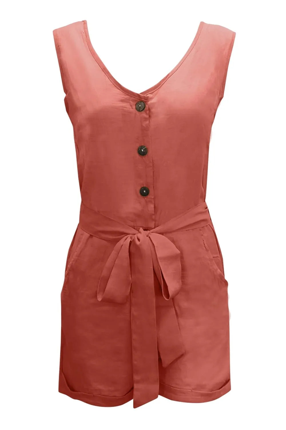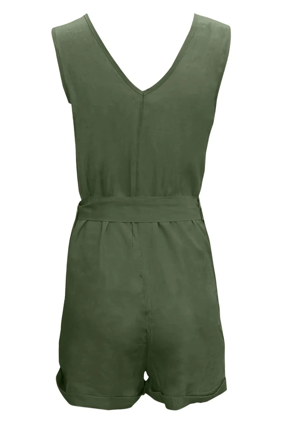 Full Size Tied V-Neck Sleeveless Romper with Pockets