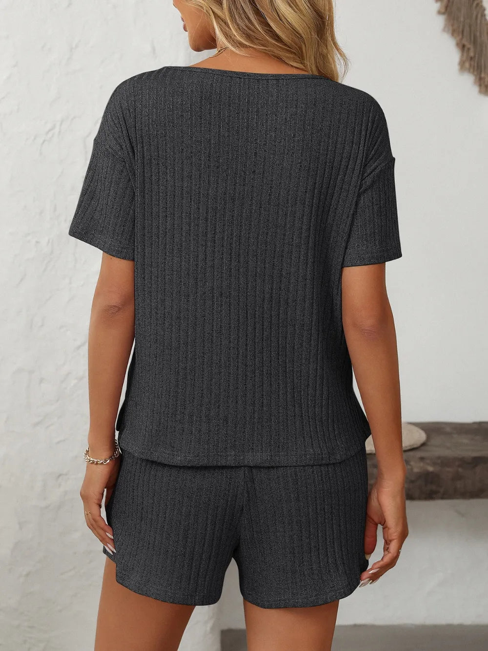 Mandy V-Neck Short Sleeve Top and Shorts Set