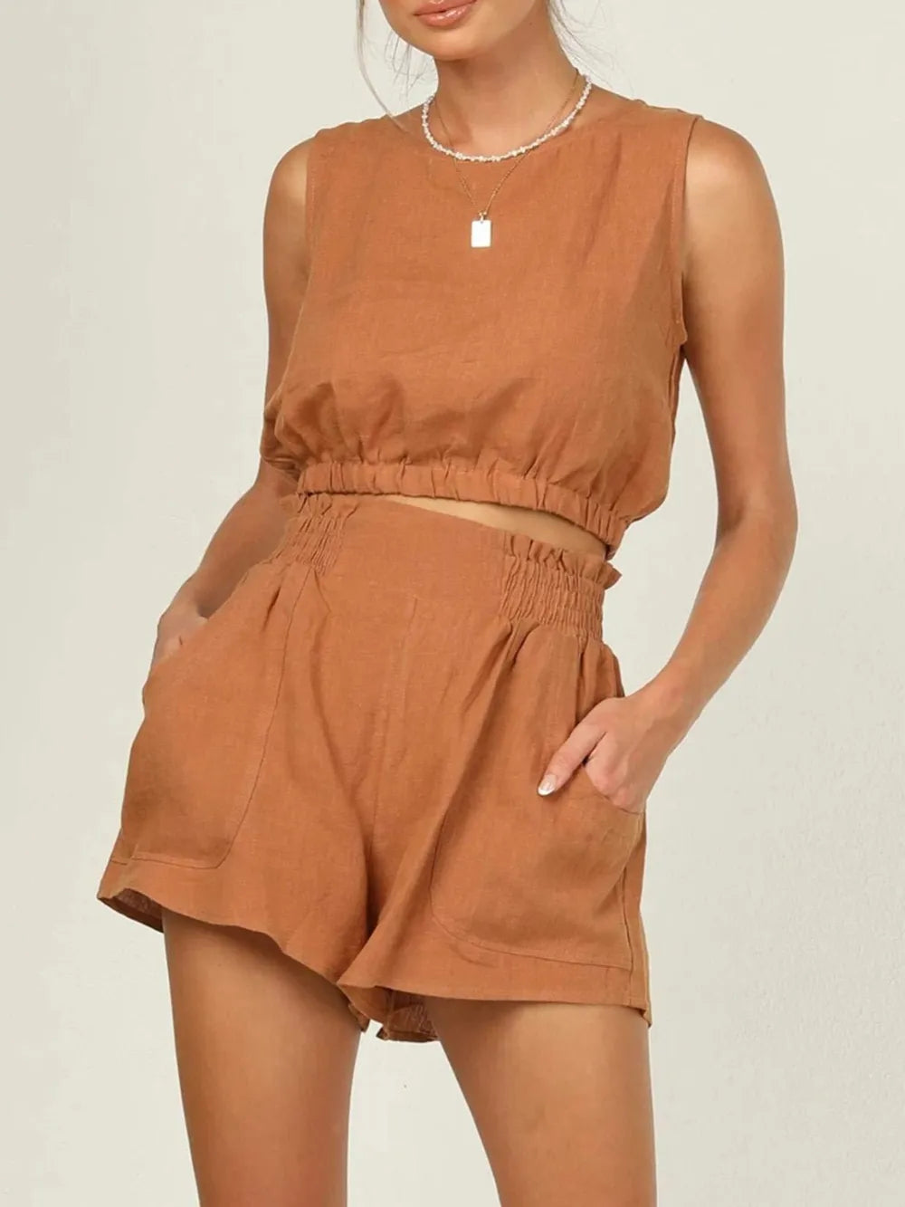 Round Neck Sleeveless Top and Shorts Set