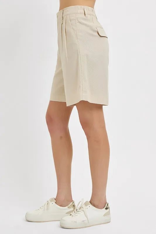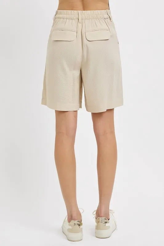 RISEN High Rise Pleated Front Shorts