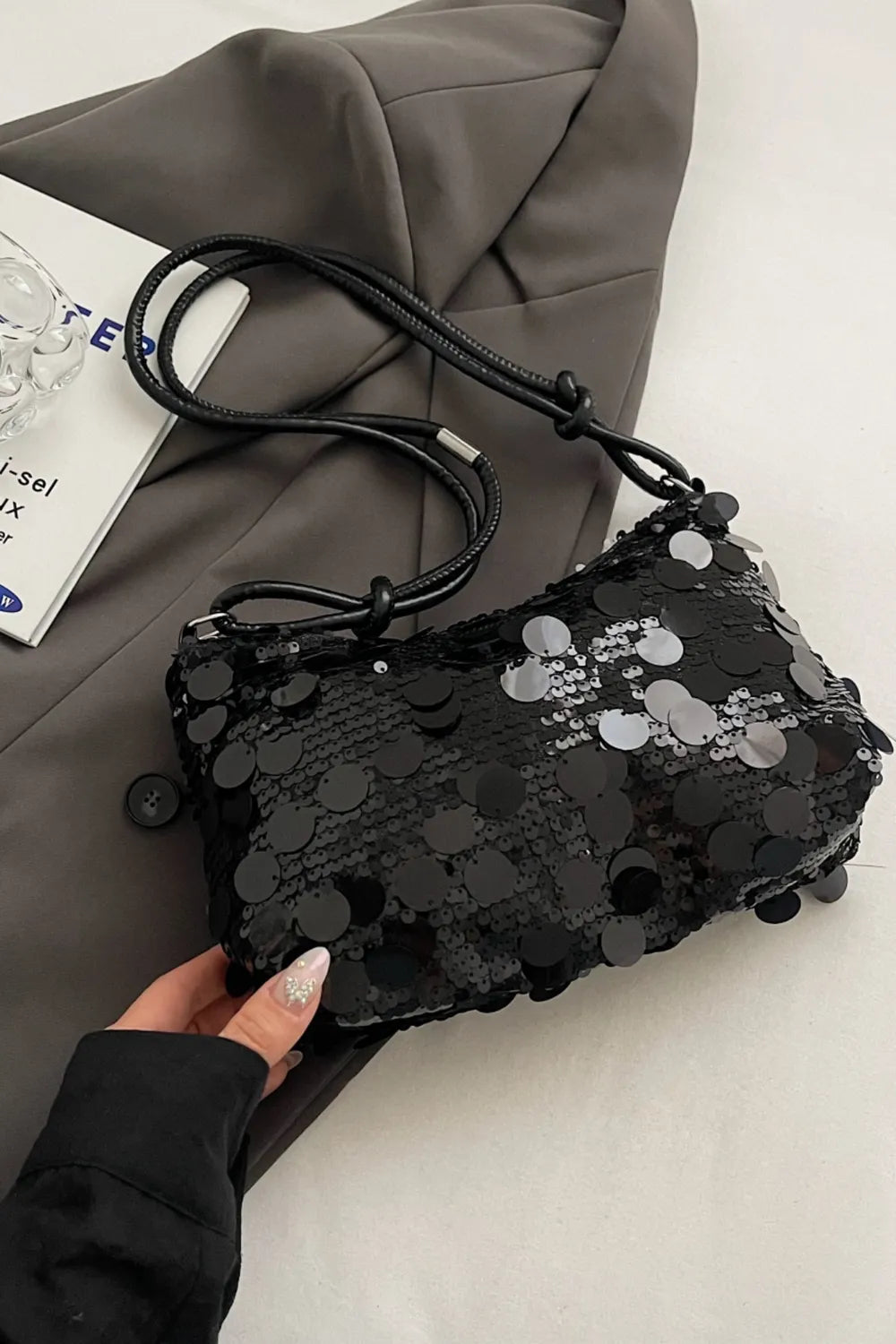 Sequin Knotted Straps Shoulder Bag