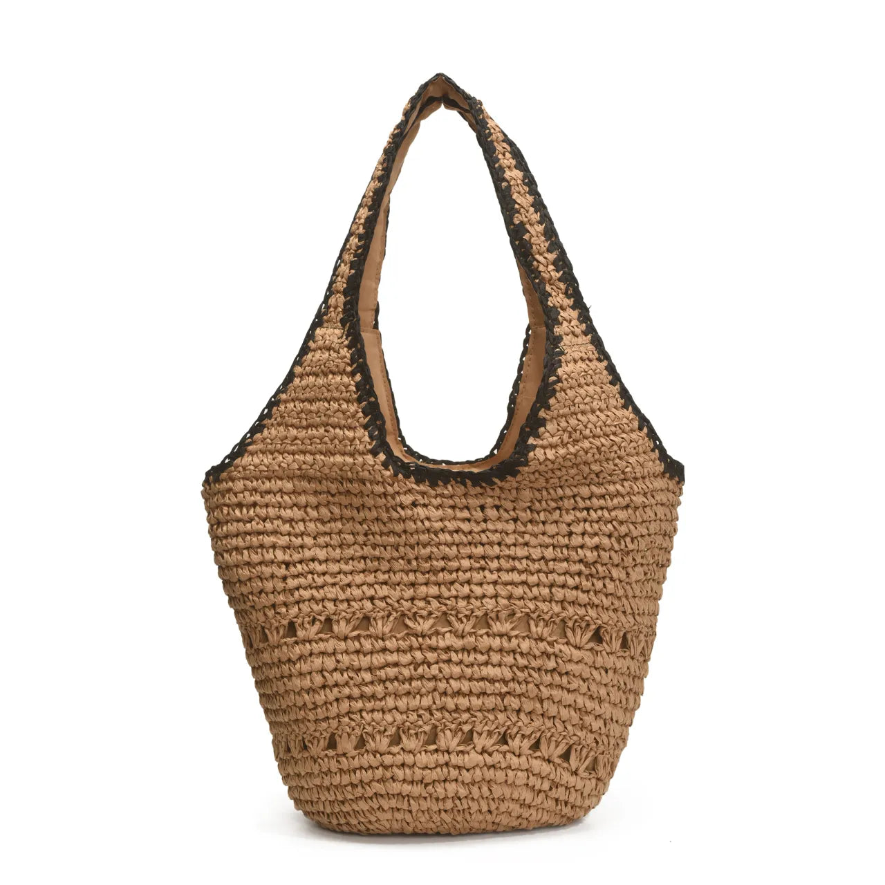 Home/Shoulder Bags/Woven Straw Shoulder Bag with Contrast Trim