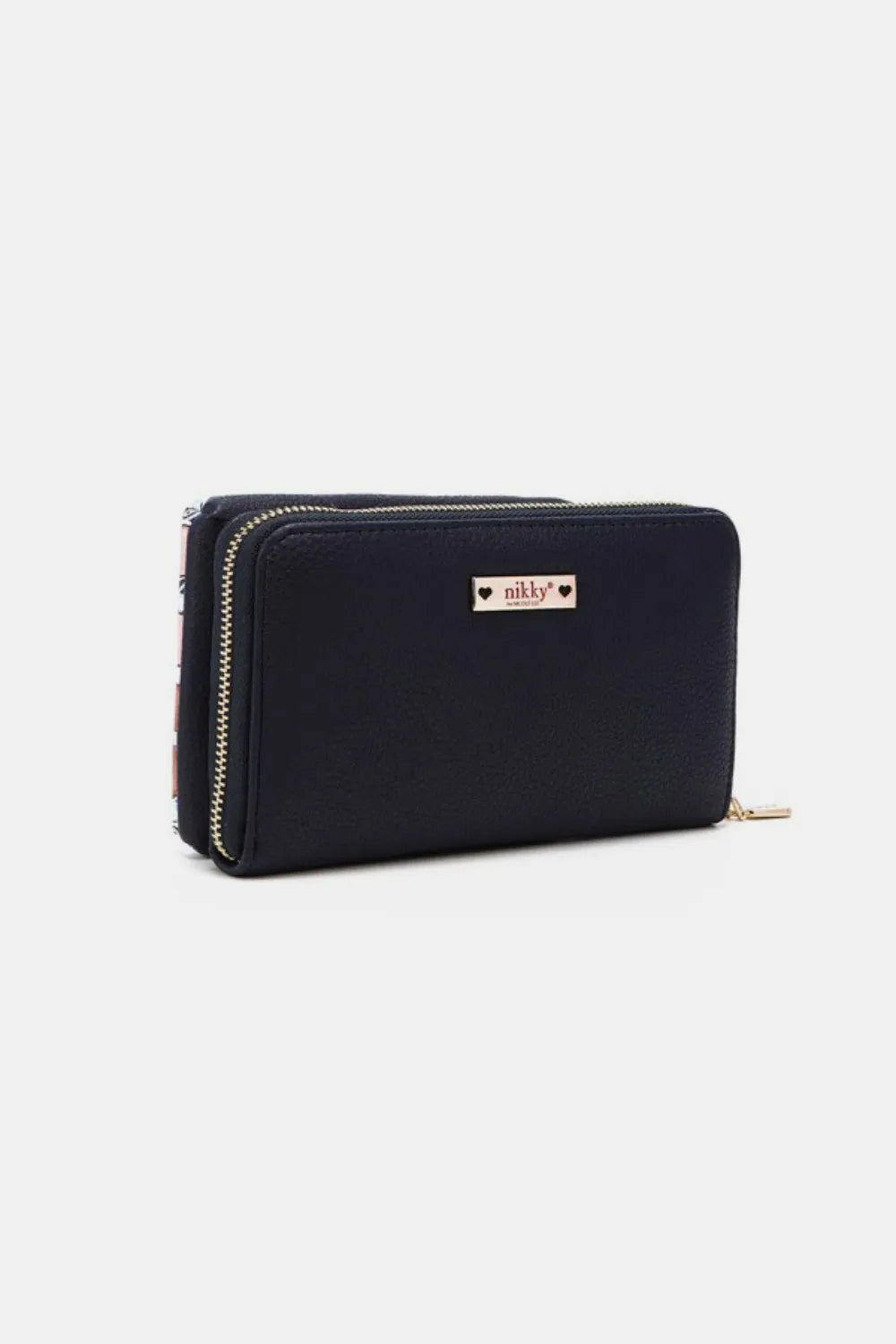 Wallet: 2 note slots, 8 card slots, and center zip pocket.