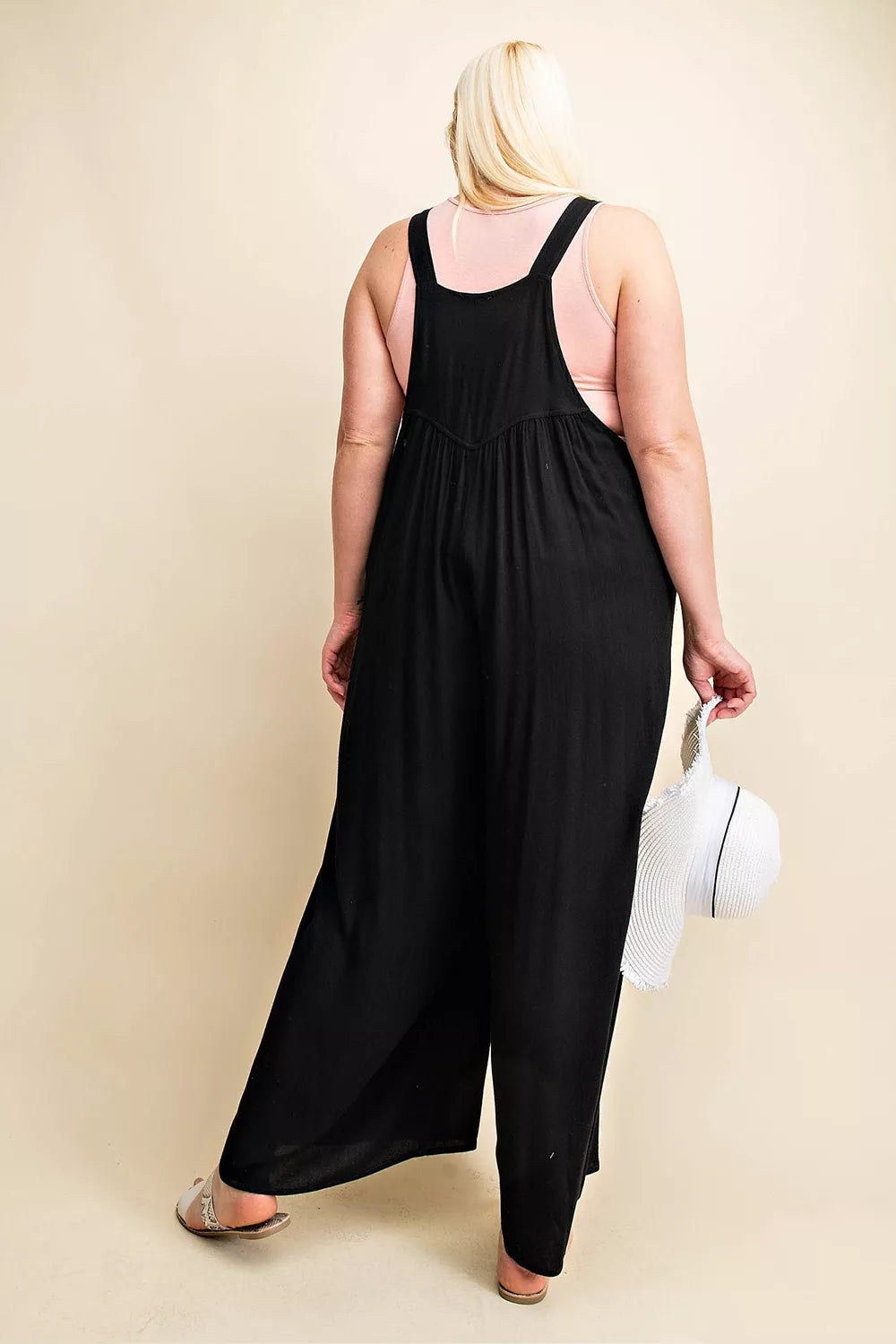 Kori America Full Size Sleeveless Ruched Wide Leg Overalls