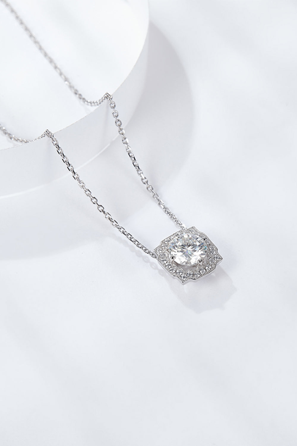 1 Carat Moissanite Flower Shape Pendant Chain Necklace
