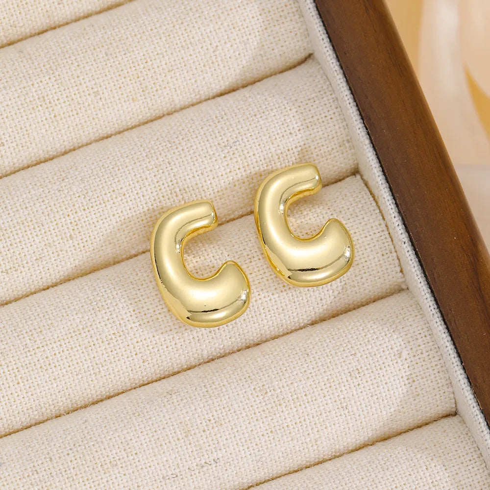 Home/All/18K Gold-Plated Bubble Letter Stud Earrings