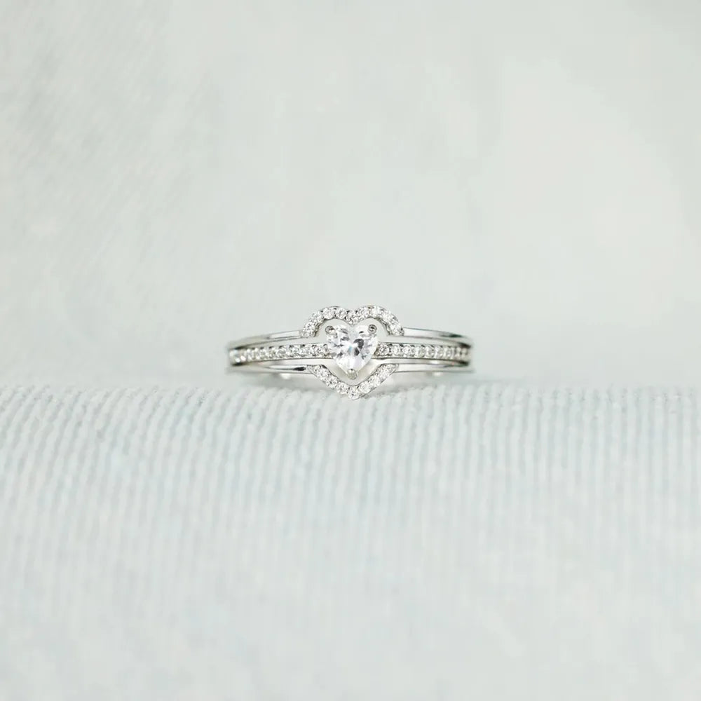 925 Sterling Silver Inlaid Zircon Heart Ring