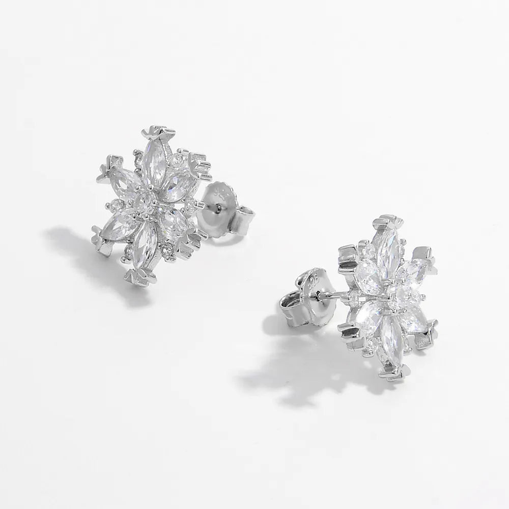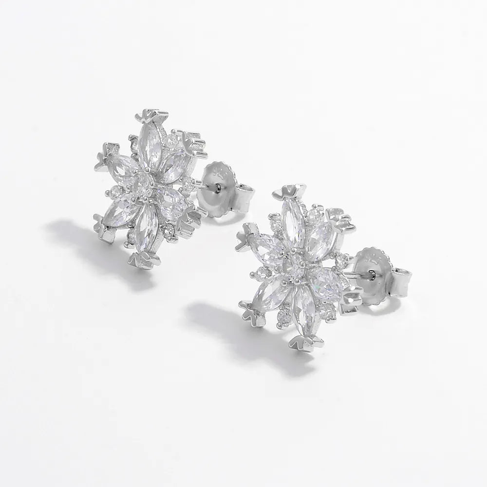 Home/All/925 Sterling Silver Zircon Snowflake Earrings