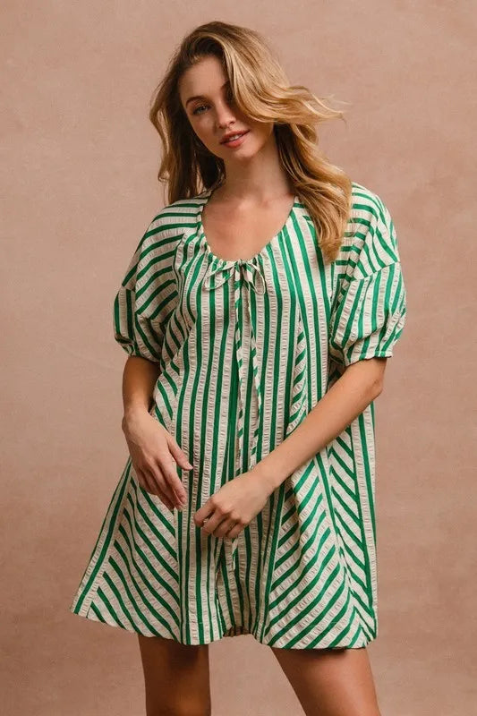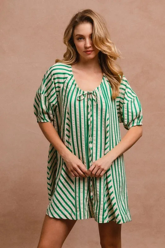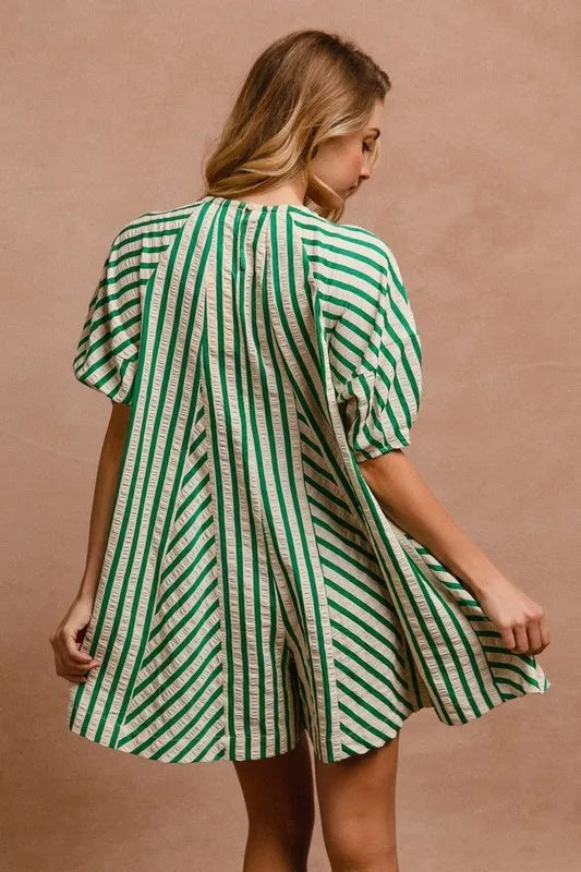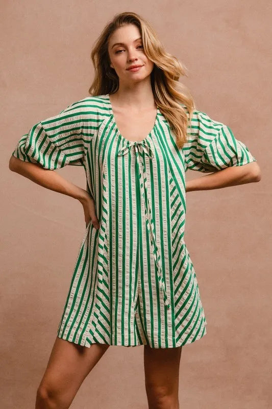 BiBi Puffy Sleeves Romper with Back Button Closure