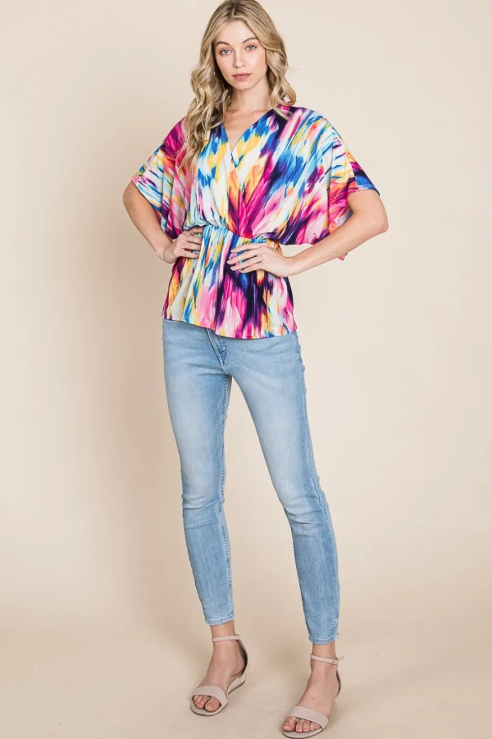 Home/All/BOMBOM Printed Surplice Peplum Blouse