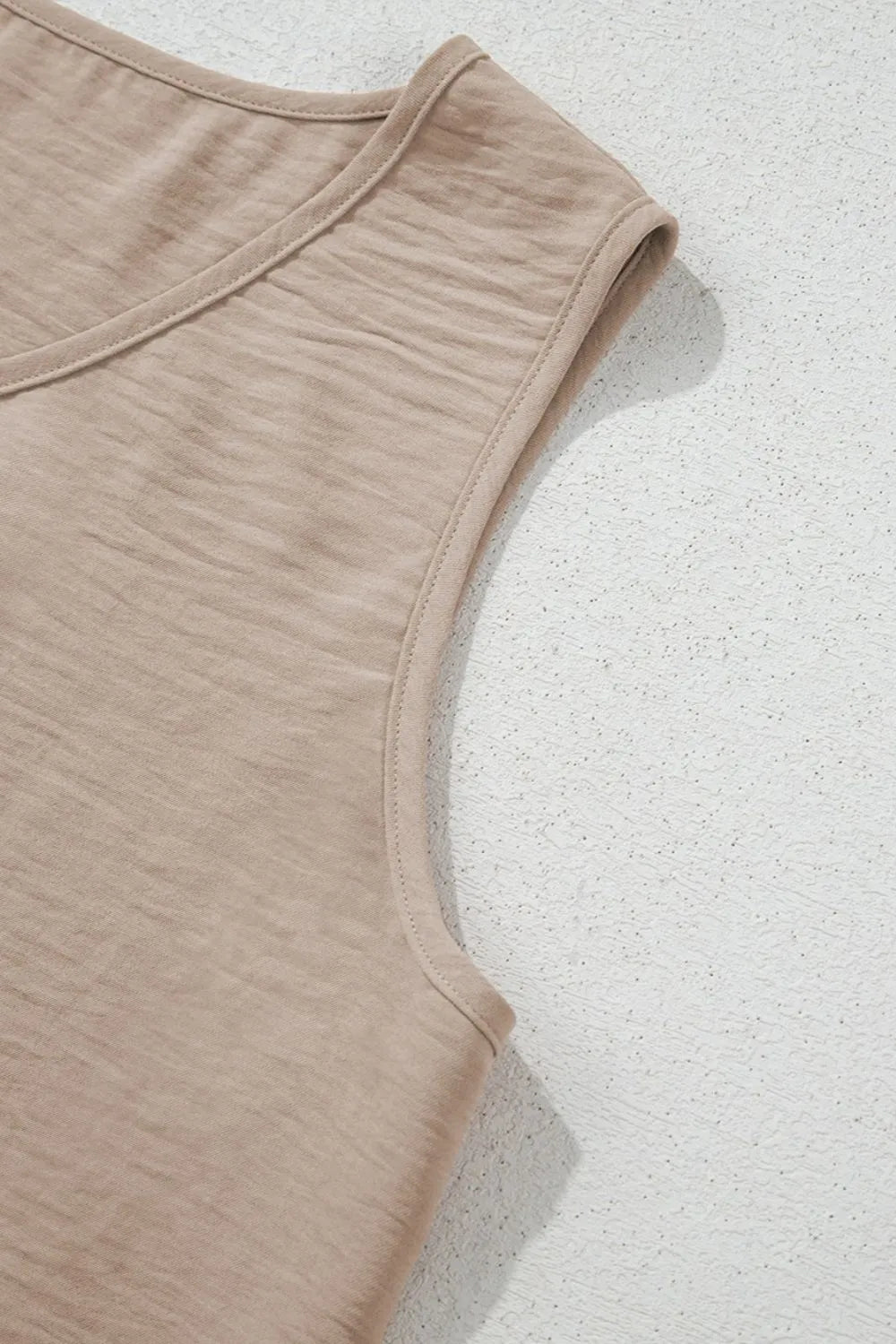 Button Down Vest and Drawstring Wide Leg Pants Set