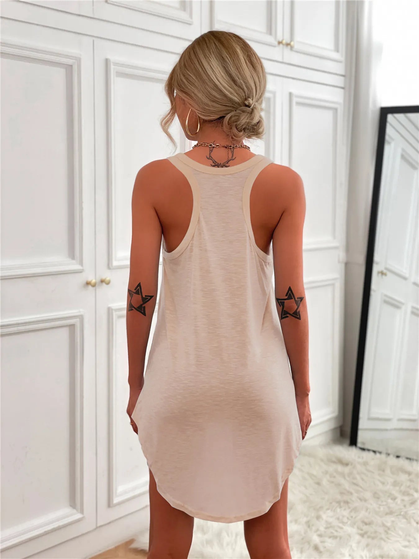 Home/All/Casual Tank Mini Dress with Curved Hem