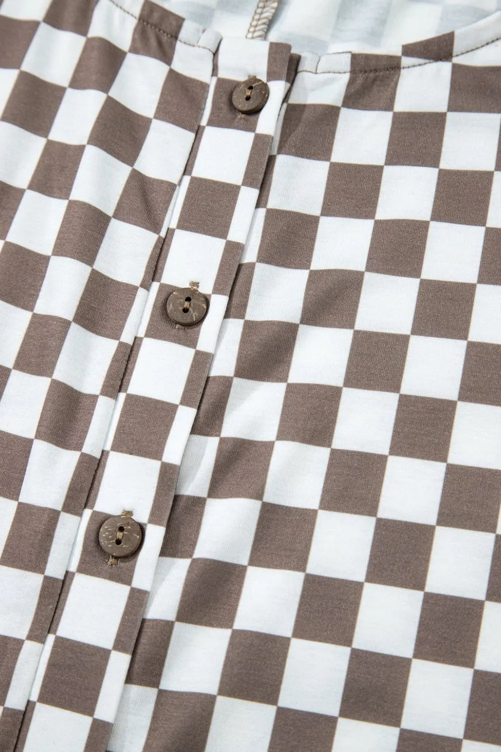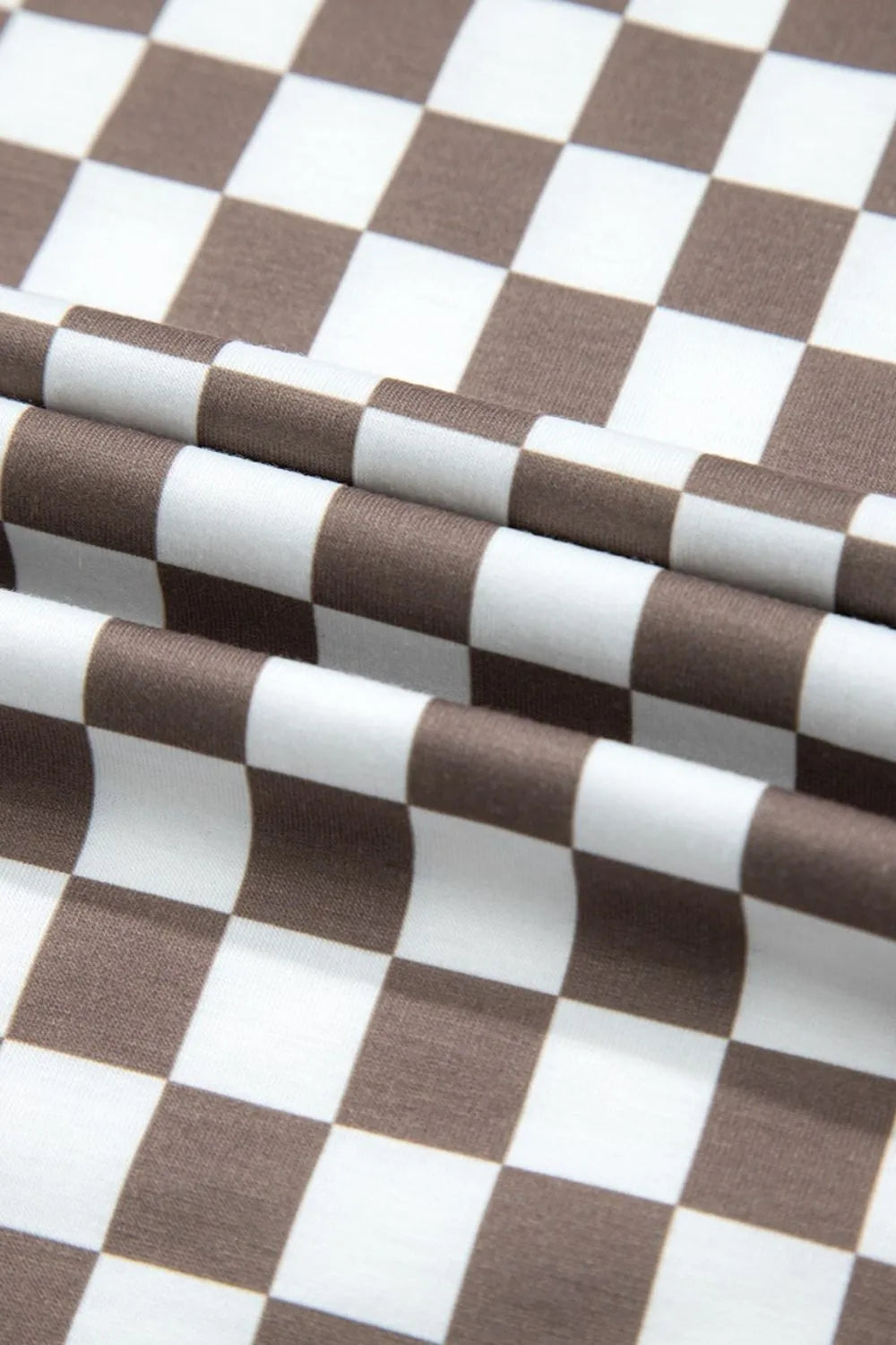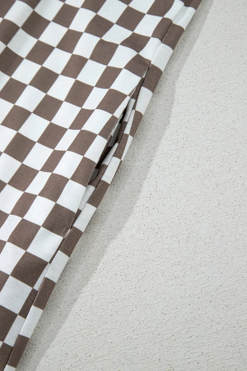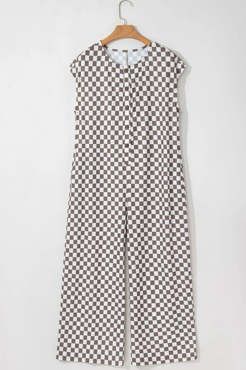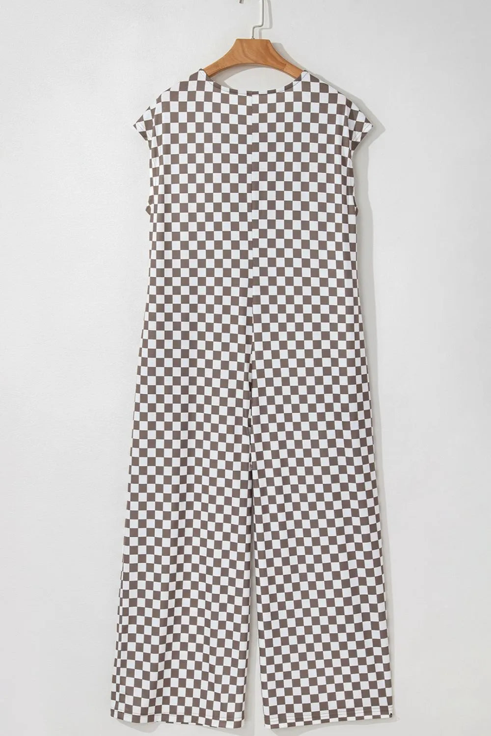 Home/All/Checkered Print Crew Neck Wide Leg Jumpsuit