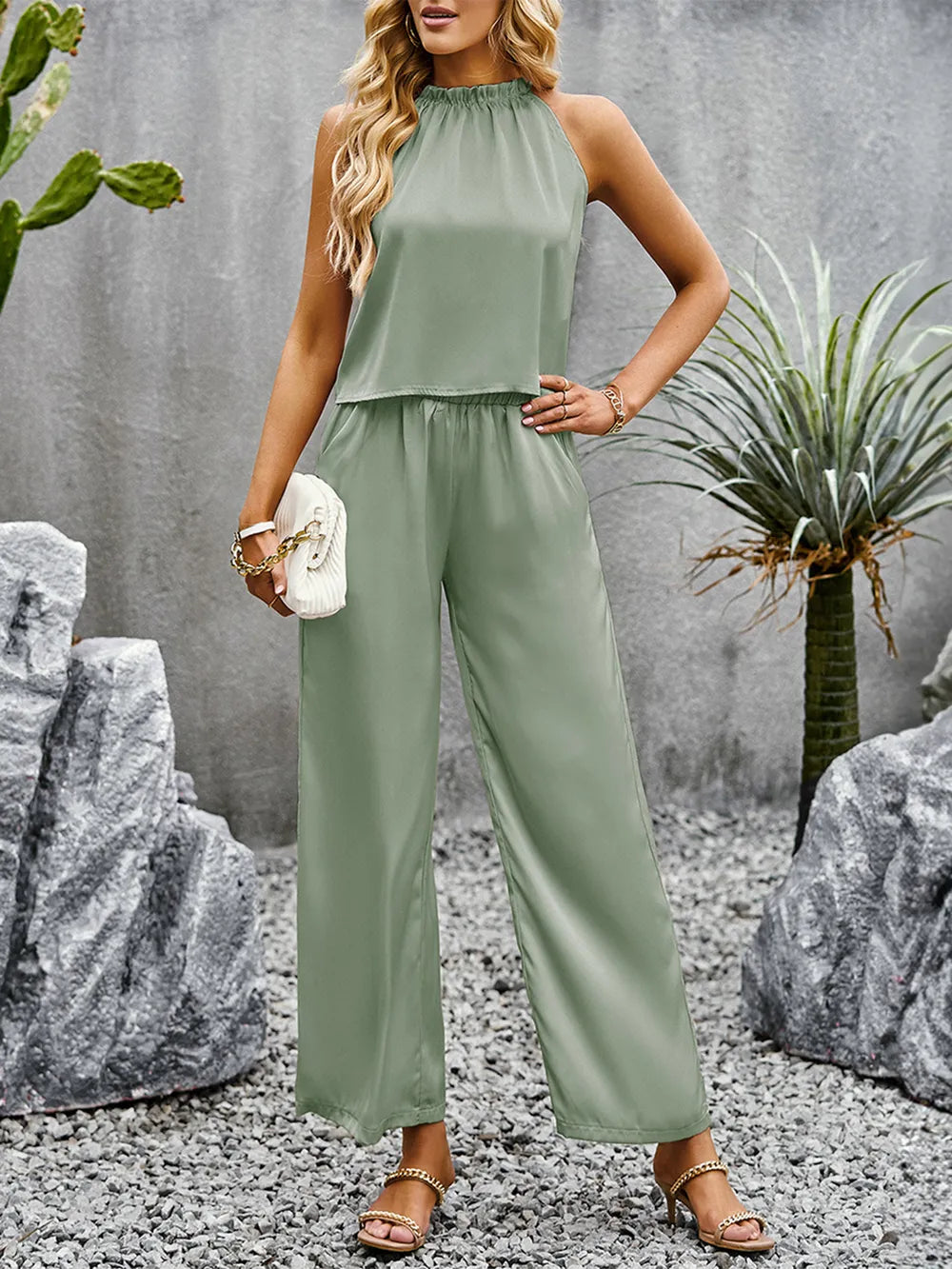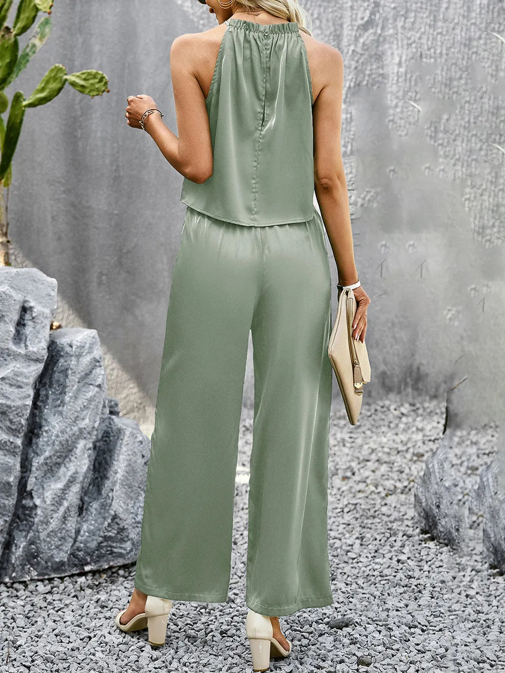 Home/All/Devine Grecian Neck Sleeveless Pocketed Top and Pants Set