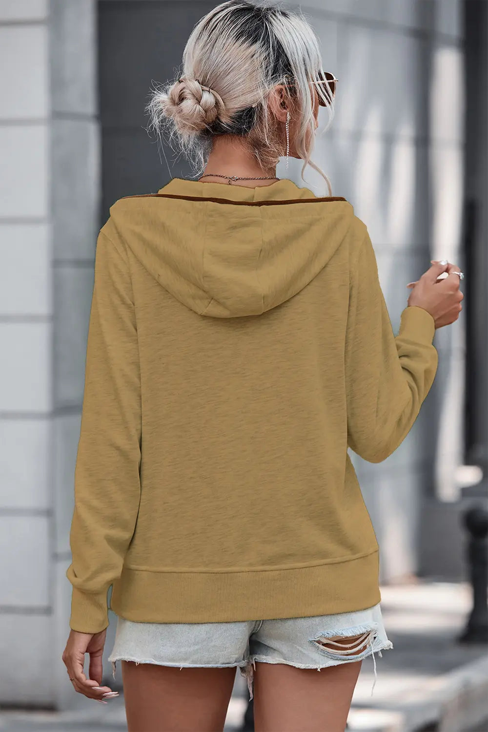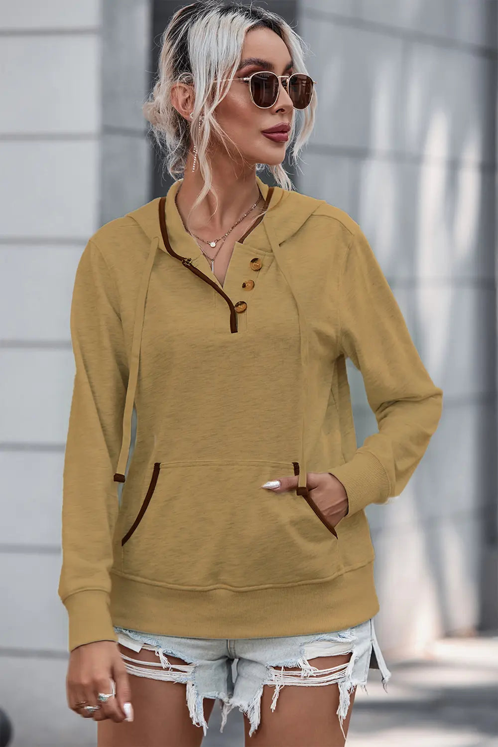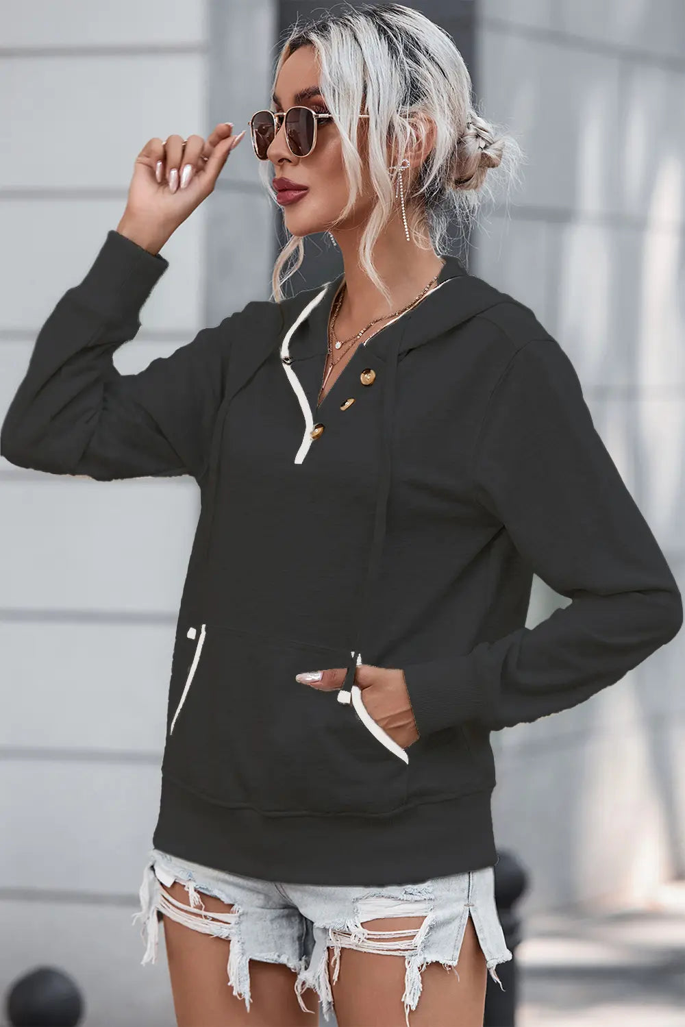 Home/All/Half Button Drawstring Long Sleeve Hoodie