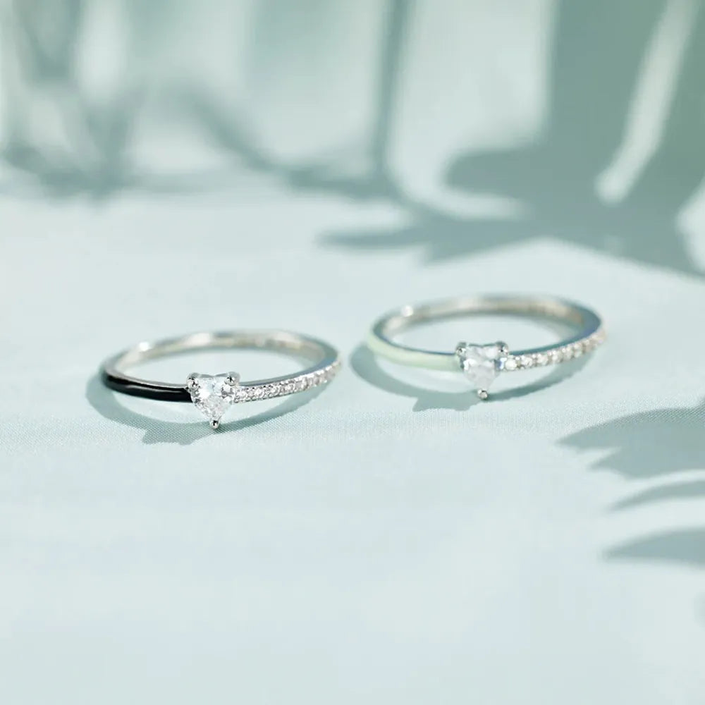 Home/All/Heart Shape Inlaid Zircon Enamel Ring