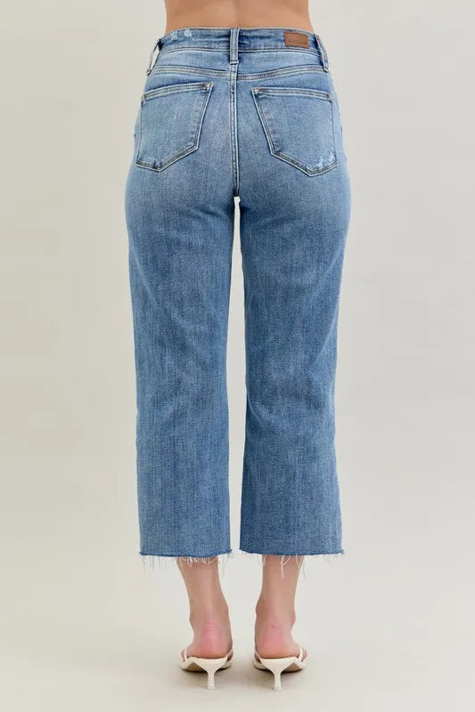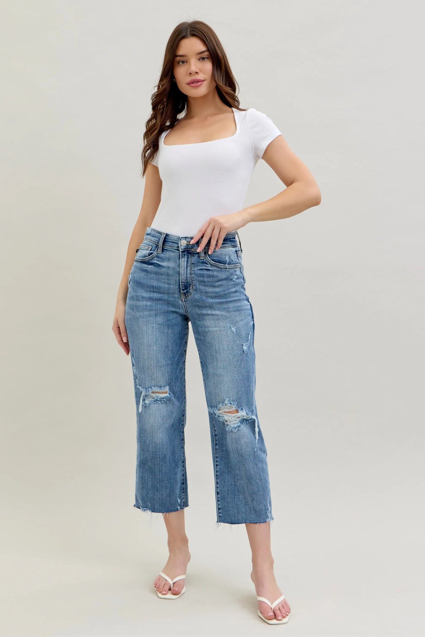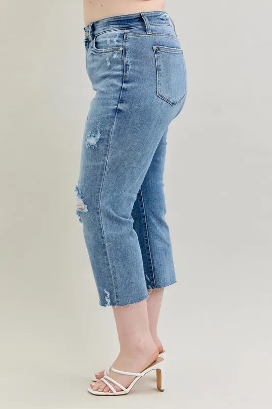 Judy Blue Full Size High Waist Destroy Crop Wide Leg Jeans Plus Size