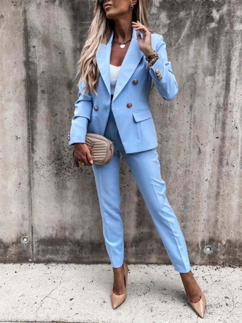 Home/All/Lapel Collar Long Sleeve Blazer and Pants Set
