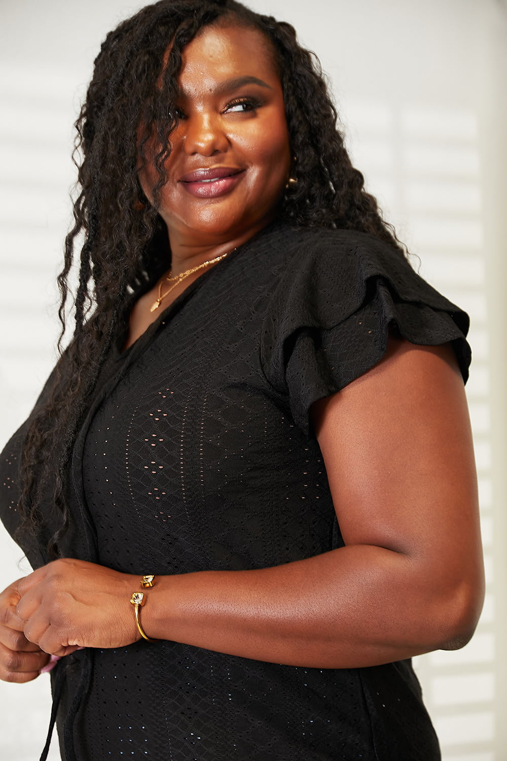 Mandy Eyelet Tie-Neck Flutter Sleeve Blouse