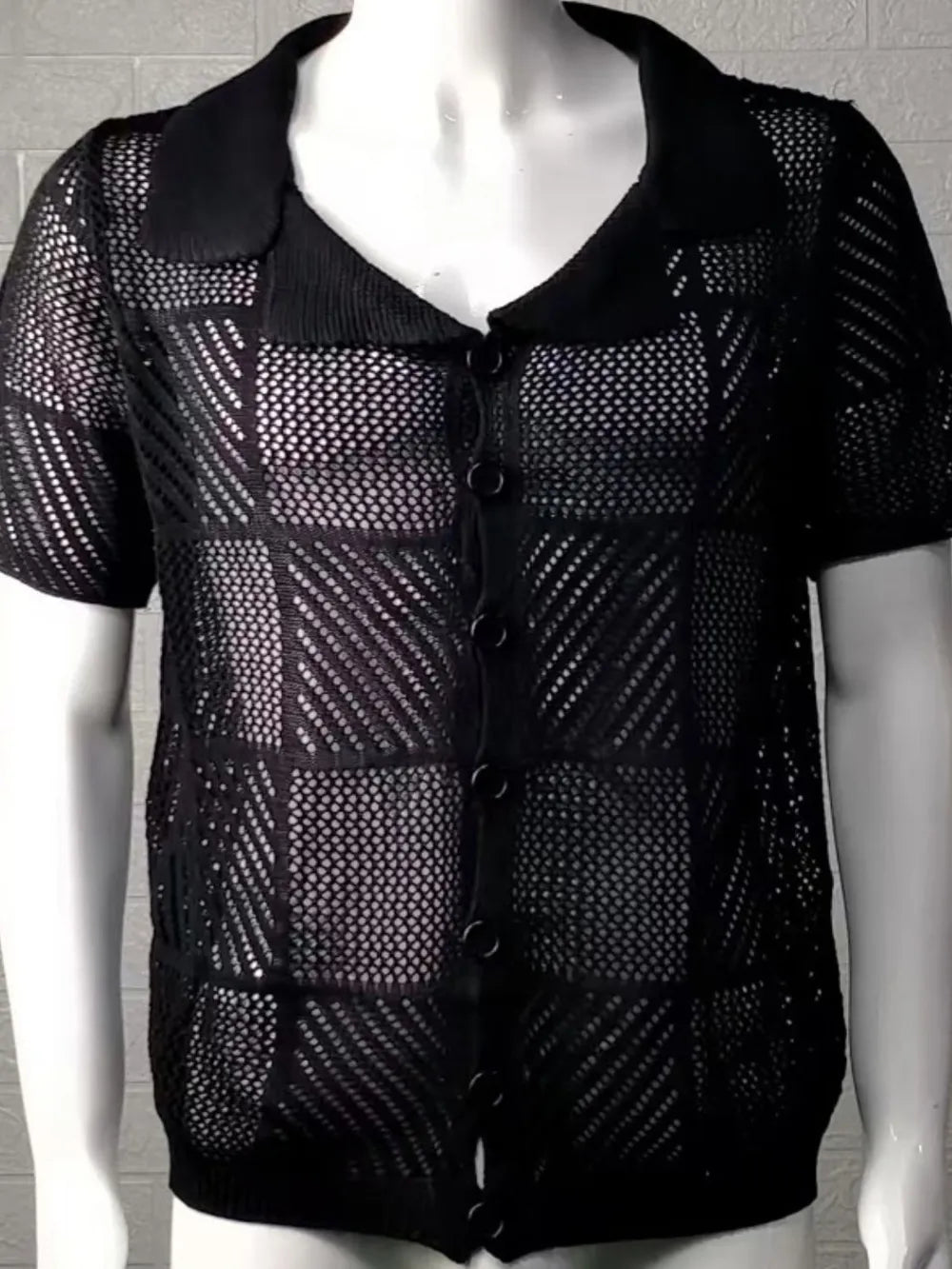 Men's Button Down Checkered Eyelet Shirt