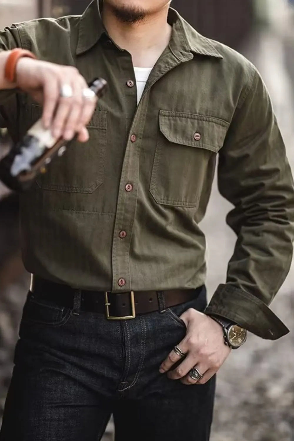 Men's Button Down Long Sleeve Shirt with Chest Pockets