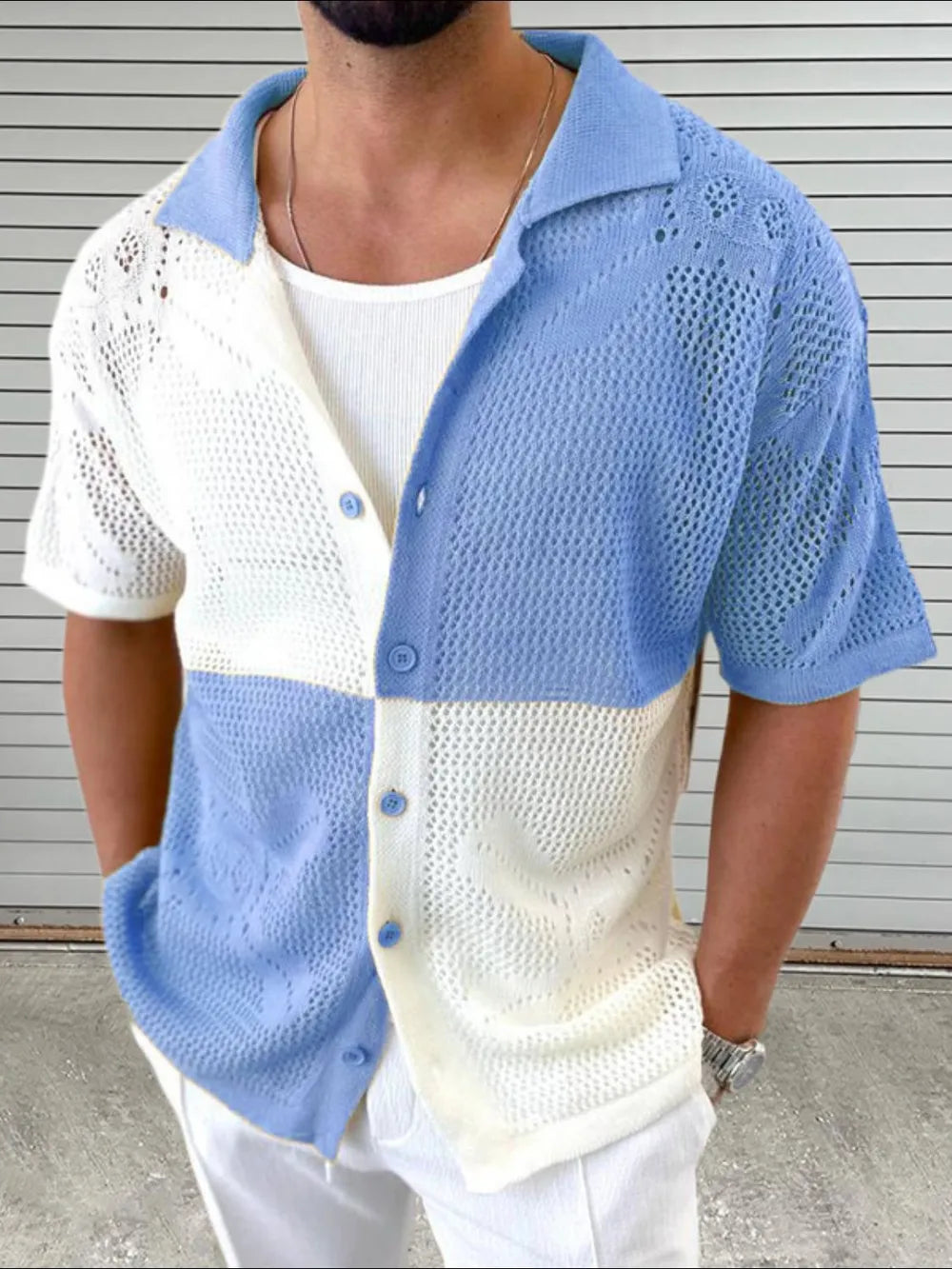 Home/All/Men's Contrast Button Down Hollow Out Shirt