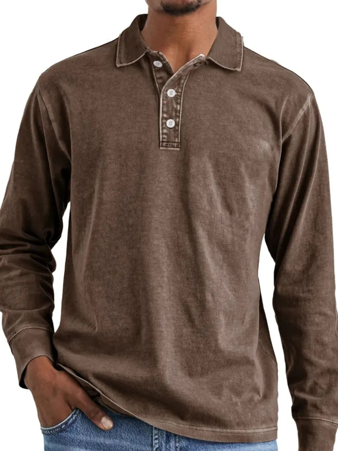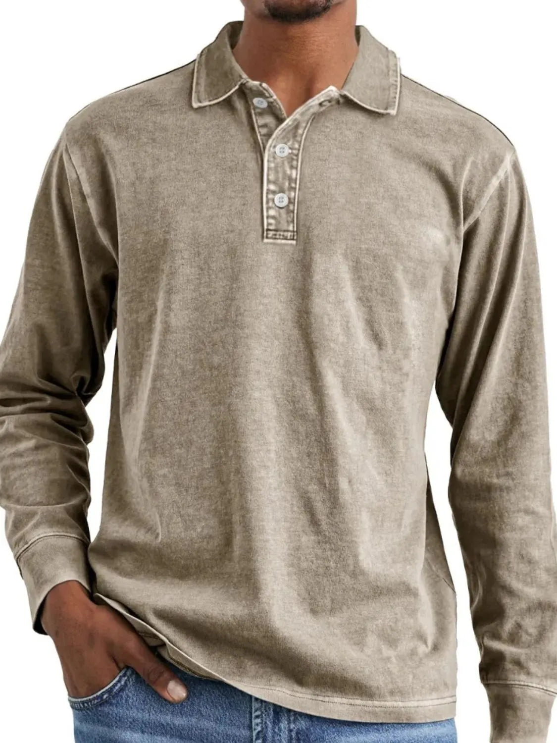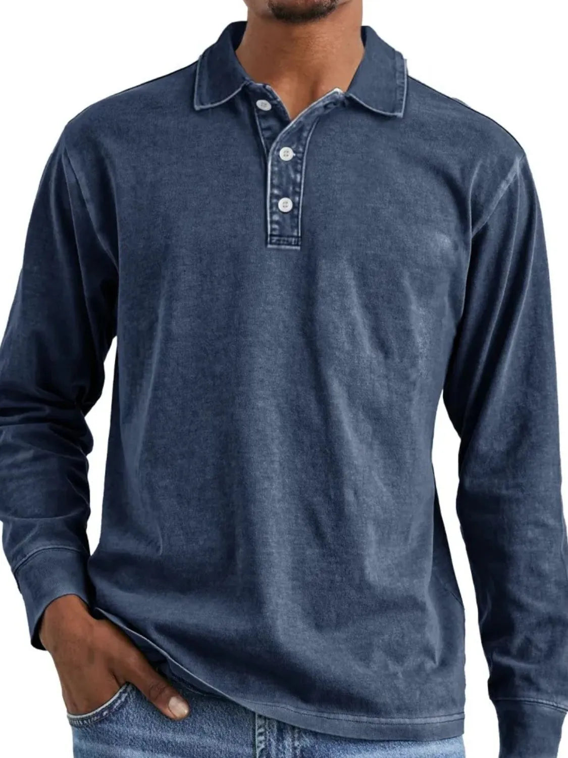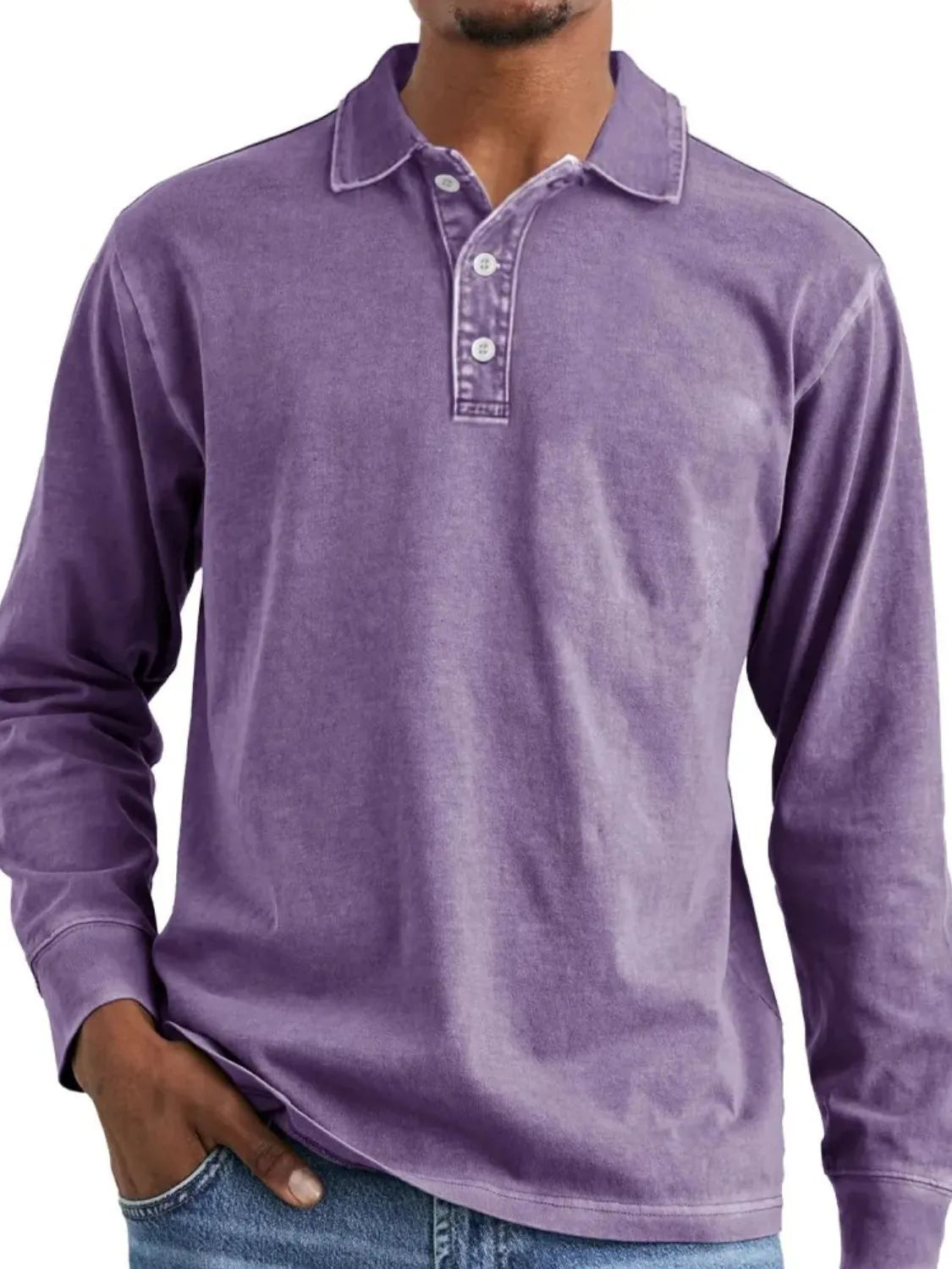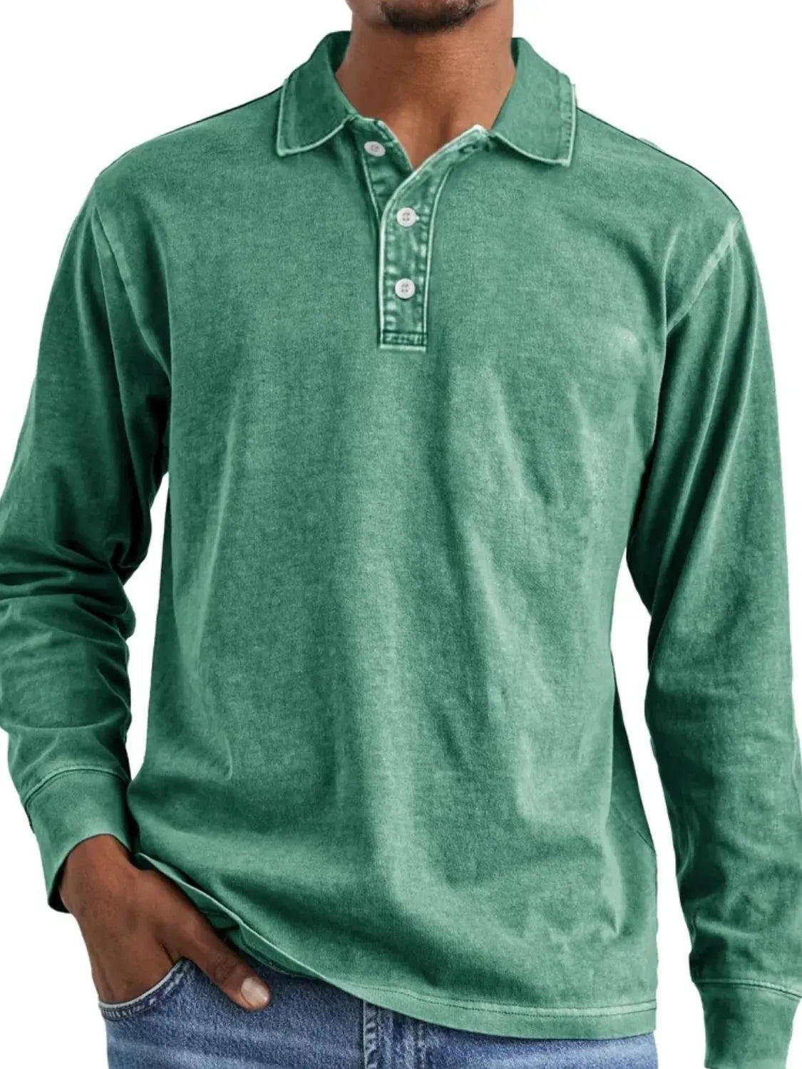 Home/All/Men's Full Size Collared Neck Long Sleeve Polo Plus Size