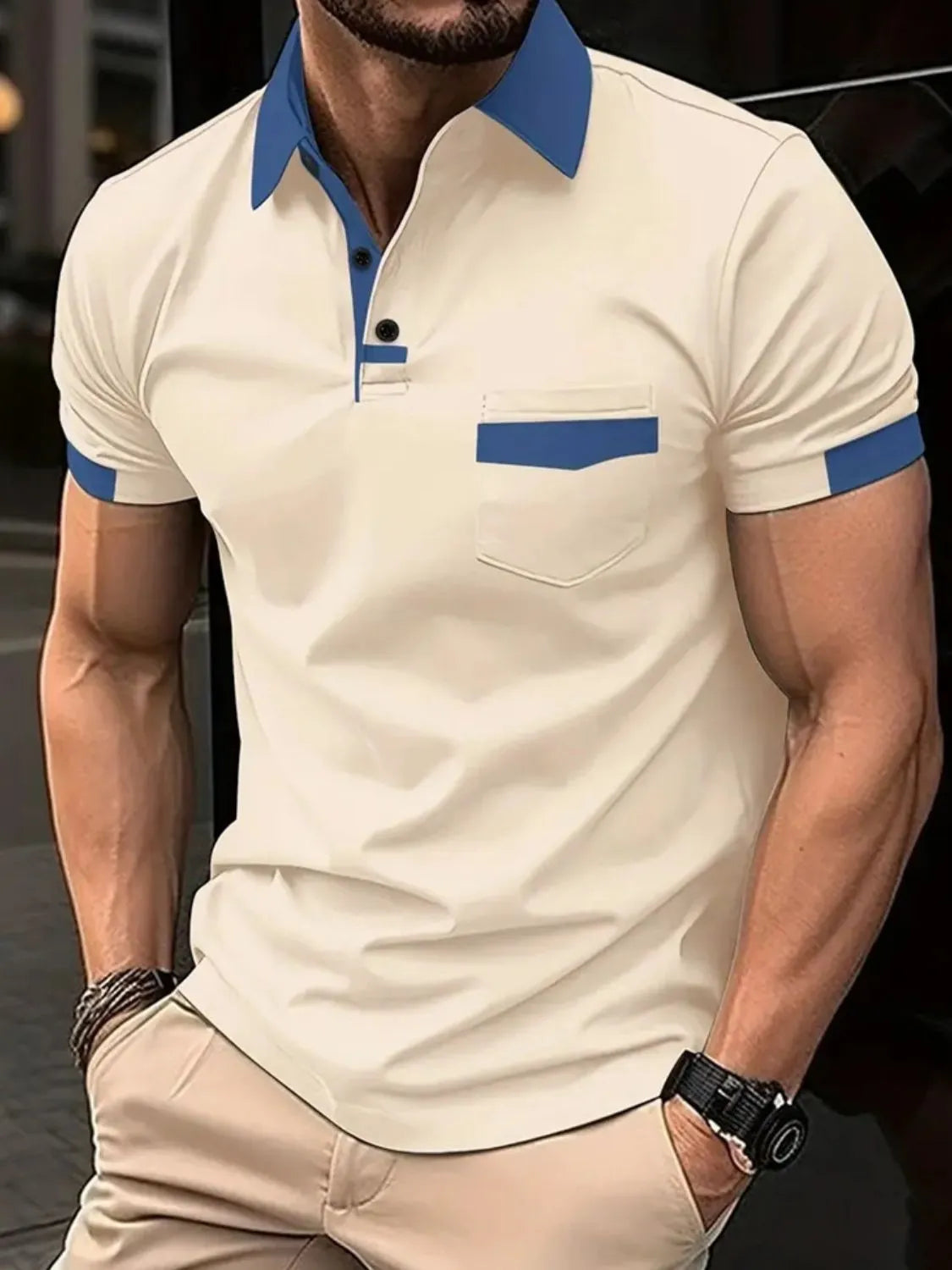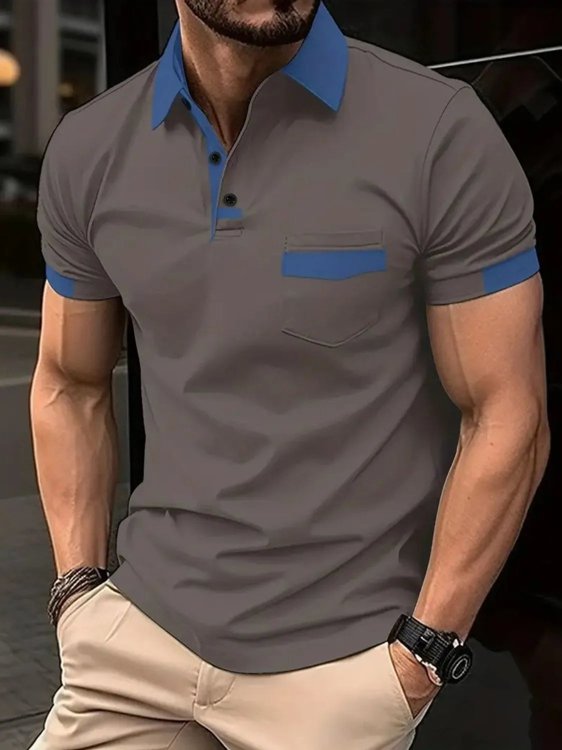 Home/All/Men's Full Size Contrast Collared Neck Short Sleeve Polo Plus Size