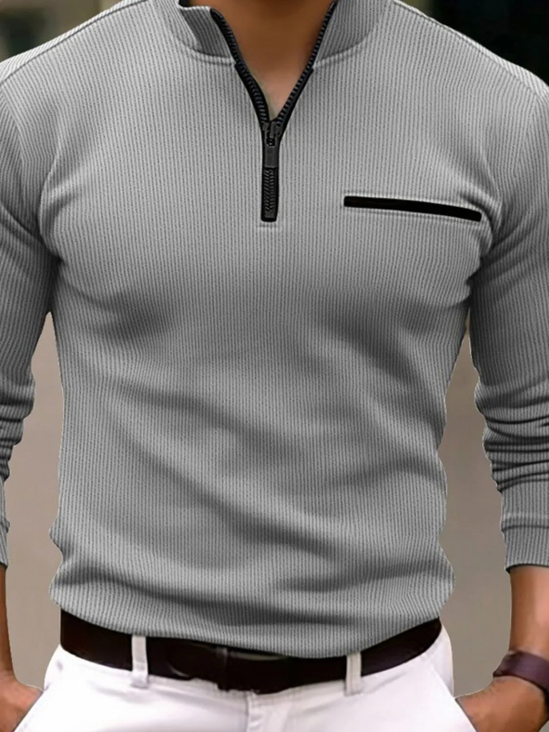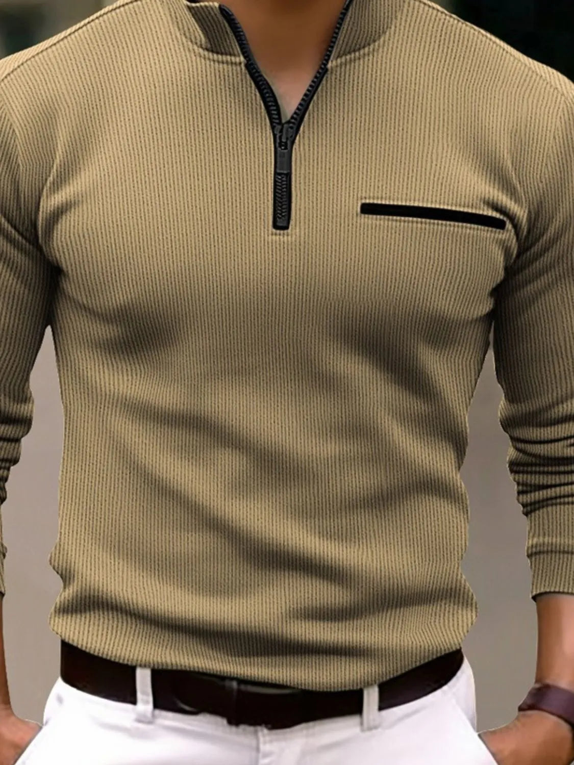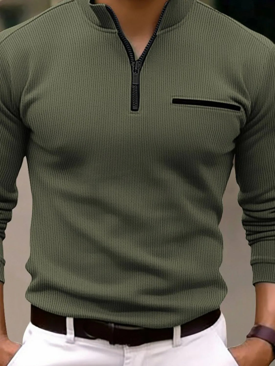 Men's Full Size Quarter Zip Long Sleeve Polo Plus Size