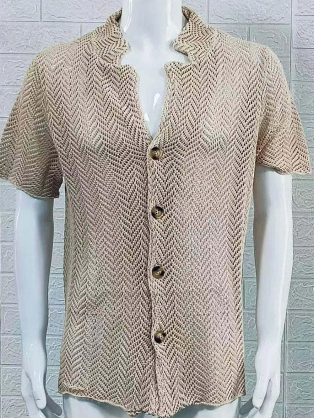 Men's Plus Size Herringbone Eyelet Button Down Knit Shirt