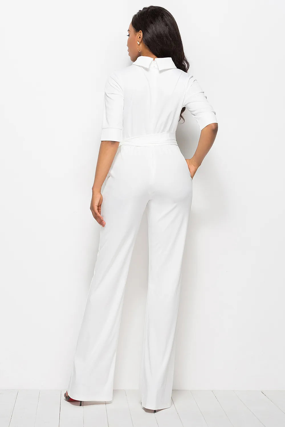 Mock Neck Tie-Waist Half Sleeve Jumpsuit