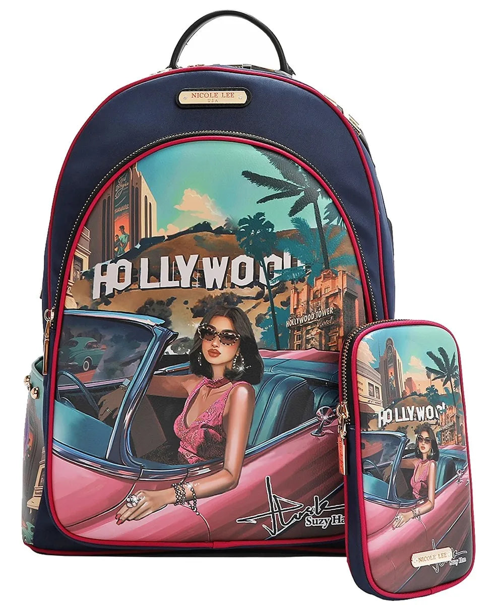 This Nicole Lee USA laptop backpack combines functionality with vintage Hollywood glamour, featuring a stunning retro-inspired graphic of a classic car scene. Constructed from high-quality, water-resistant materials, it offers superior protection for your laptop and electronics. The built-in USB charging port provides convenient device charging on-the-go, while multiple compartments ensure organized storage. The adjustable padded straps and ergonomic design deliver all-day comfort, making it perfect for students, professionals, and travelers who want to make a stylish statement.