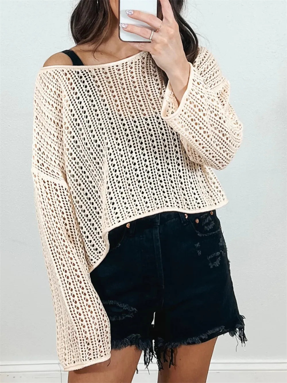 Home/All/Openwork Long Sleeve Knit Cover Up