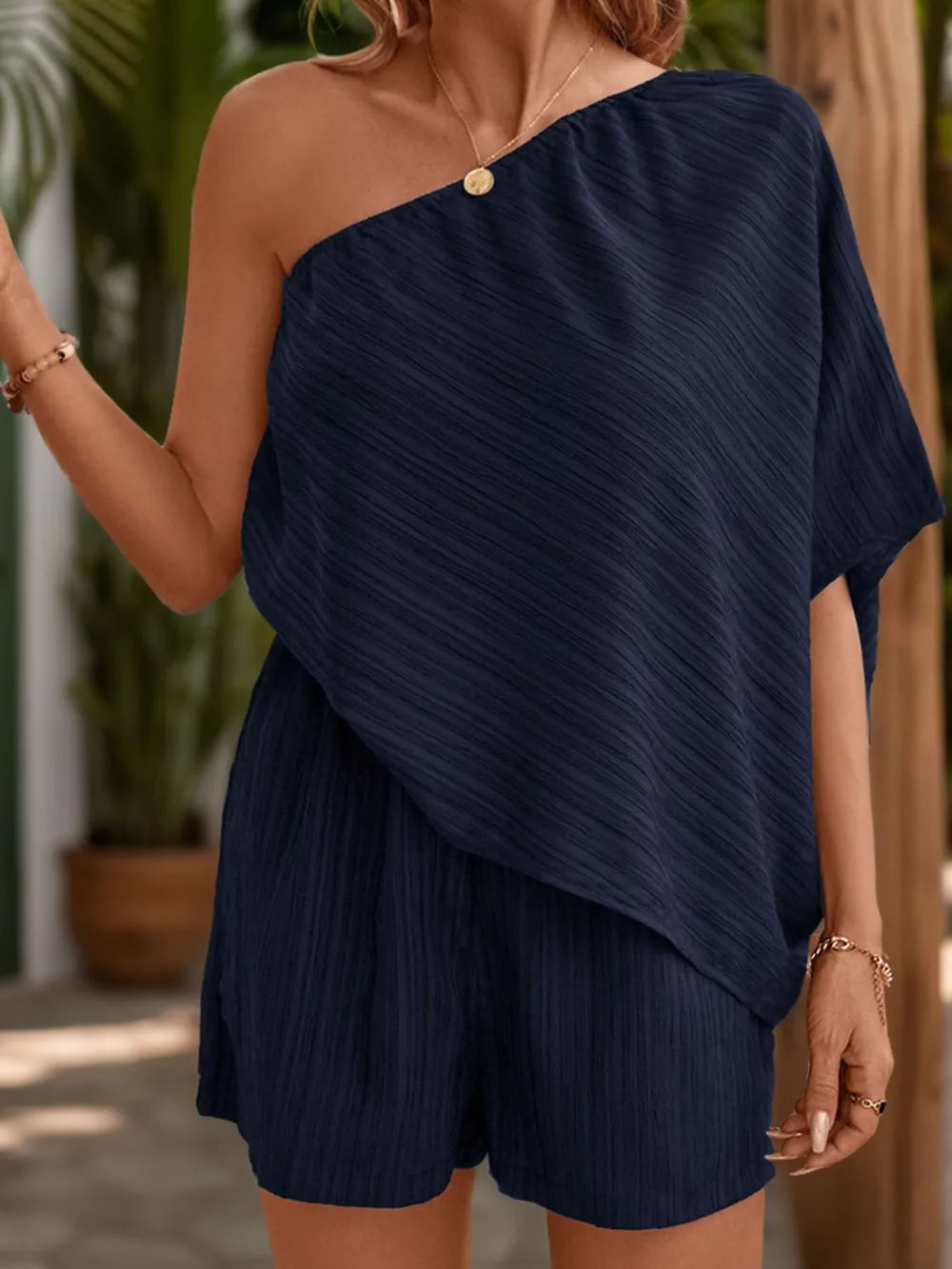 Home/All/Perfee Single Shoulder Half Sleeve Romper