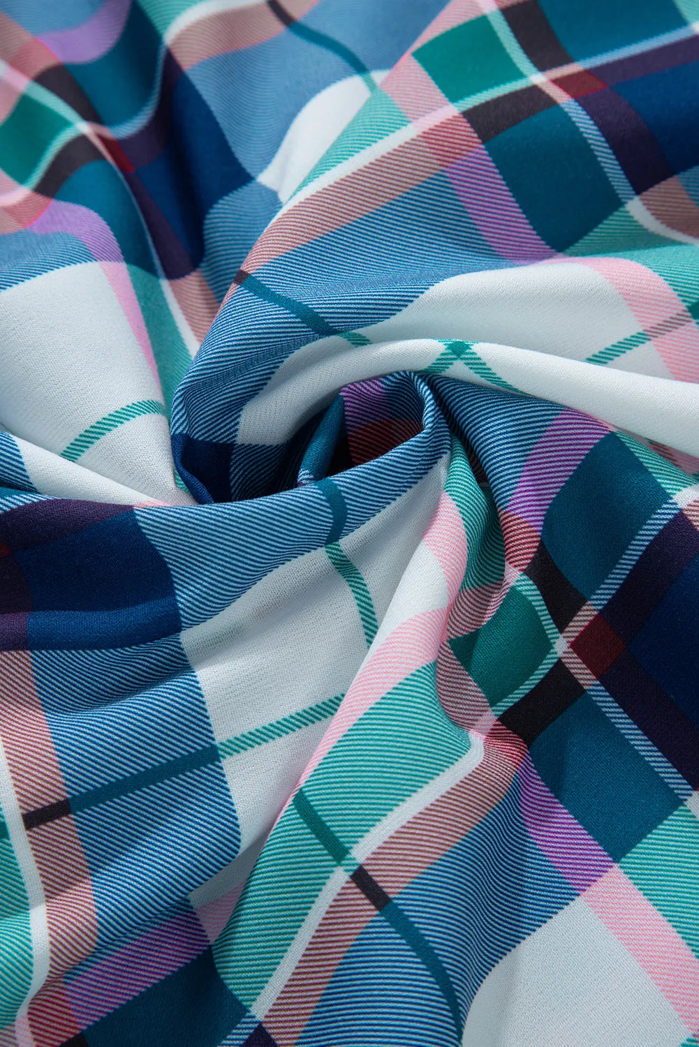Home/All/Plaid Snap Down Long Sleeve Top and Shorts Lounge Set